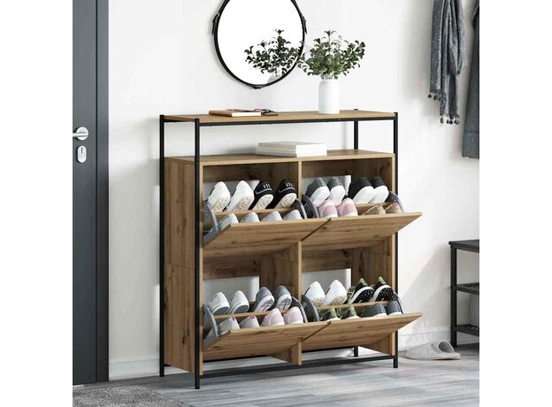 Cabinet pantofi cu 4 sertare flip Stejar Artisan 100x34x112 cm
