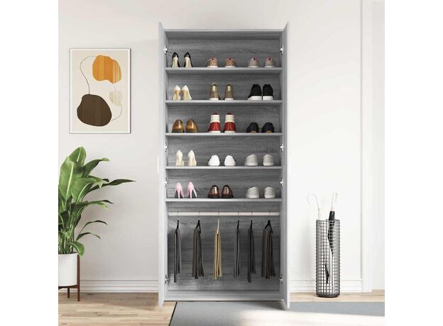 Acest cabinet pentru pantofi e o soluție grozavă de depozitare care aduce stil în casa ta și îți ține încălțările în ordine. Finisajul gri sonoma îi dă un look modern, potrivit cu diferite stiluri de interior, fiind o alegere excelentă pentru dormitoare și holuri.