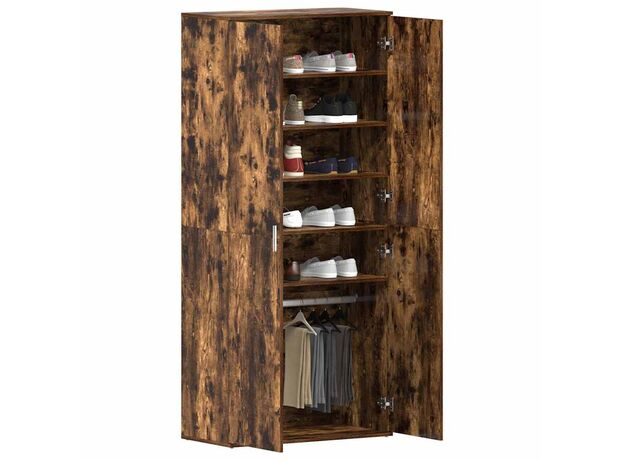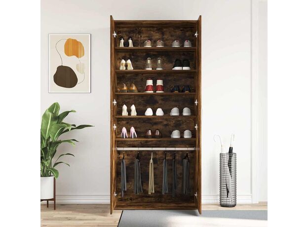 Acest cabinet pentru pantofi e o soluție stylish pentru a-ți menține spațiul ordonat în timp ce îți arăți încălțările. Finisajul său modern din stejar afumat oferă un aspect plăcut, care se potrivește cu stiluri de interior diverse, fiind perfect pentru dormitoare, camere de zi și holuri.