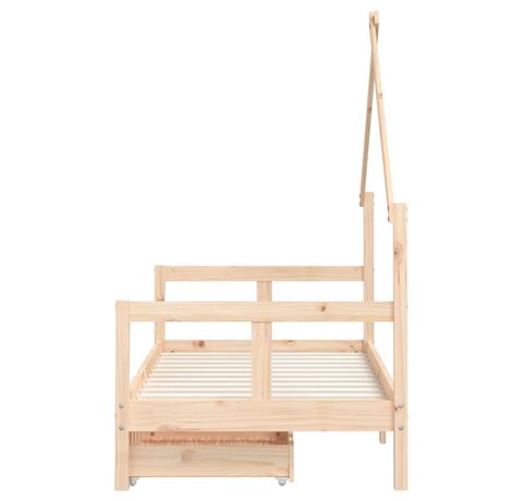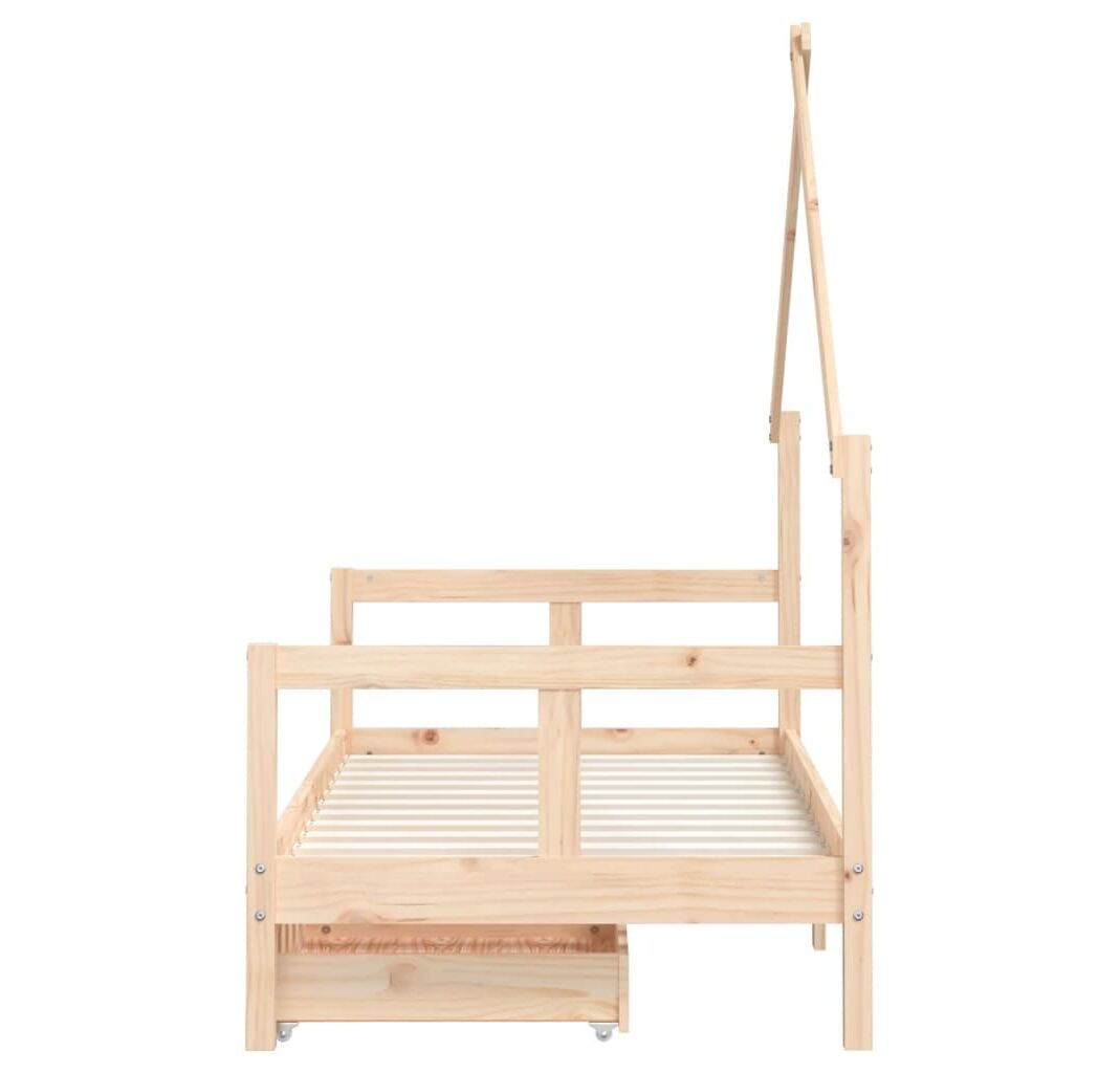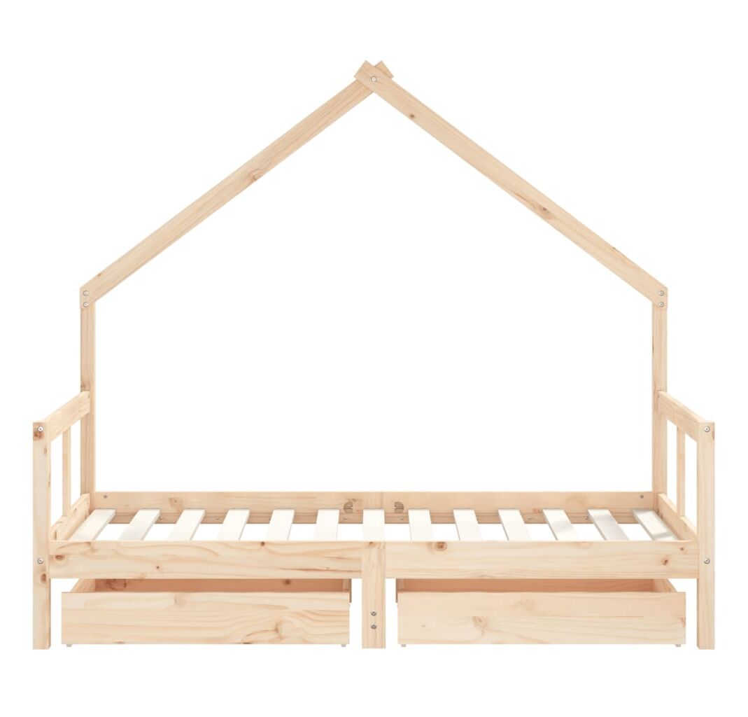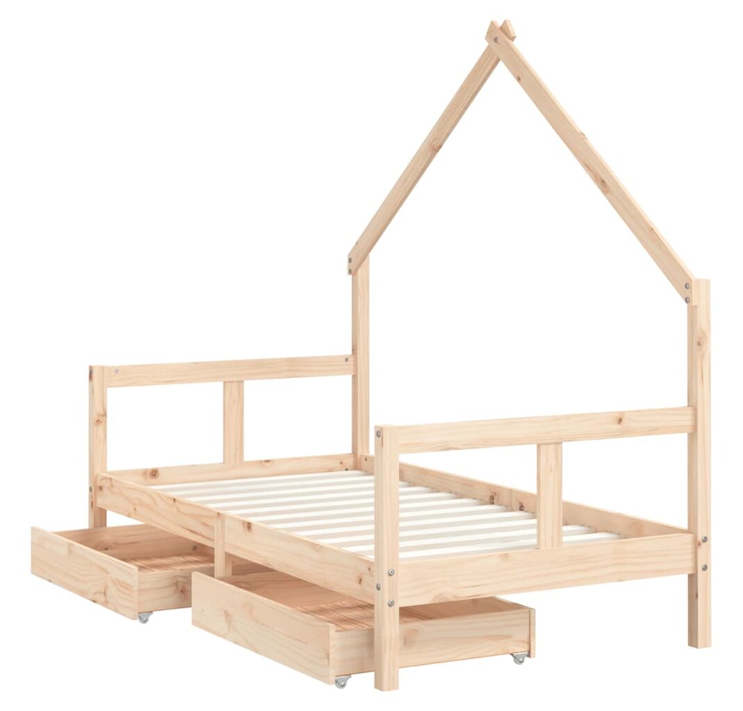 - Lemn masiv de pin: Acest cadru de pat pentru copii este realizat din lemn masiv de pin. Lemnul masiv de pin este un material natural frumos. Lemnul de pin are fibre drepte, iar nodurile conferă materialului unicitate și un aspect rustic.