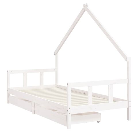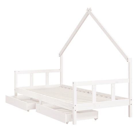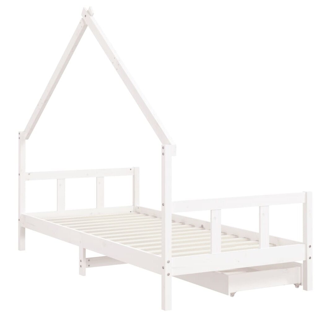 Cadru de pat cu sertare de copii, alb, 90x200 cm lemn masiv pin