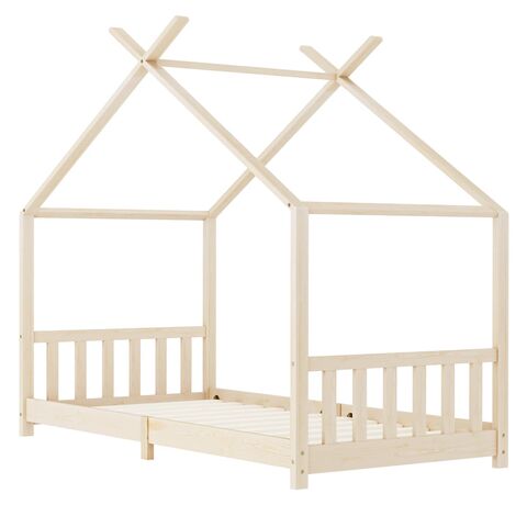 Patul este conceput în mod inteligent, cu un cadru stil casă în copac, pe care puteți agăța perdele, ca să creați puțină intimitate pentru copilul dvs. Poate fi utilizat și ca loc de lectură sau căsuță de joacă pentru copil. Fabricat din lemn masiv de pin, acest cadru de pat este extrem de robust și durabil. Șipcile rezistente oferă suportul necesar și sunt deosebit de confortabile. Acest cadru de pat este potrivit pentru o saltea de 70 x 140 cm.