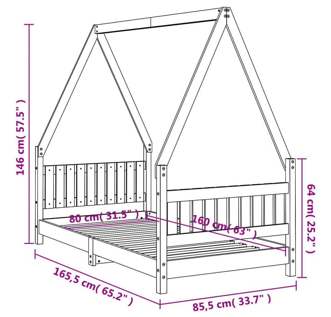 Cadru de pat pentru copii, 80x160 cm, lemn masiv de pin