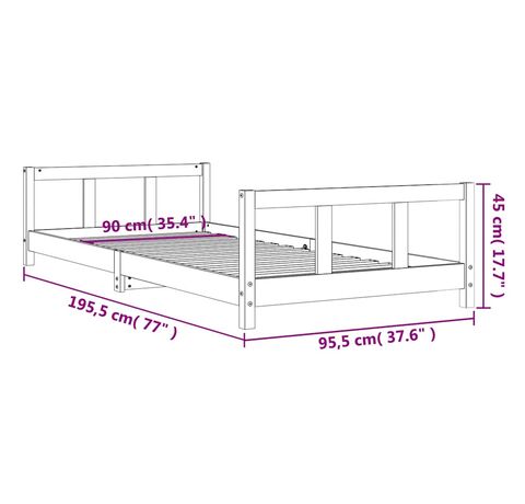 Cadru de pat pentru copii, alb, 90x190 cm, lemn masiv de pin