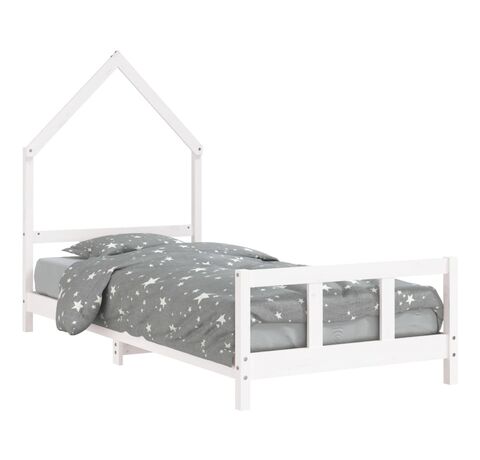 Cadru de pat pentru copii, alb, 90x190 cm, lemn masiv de pin