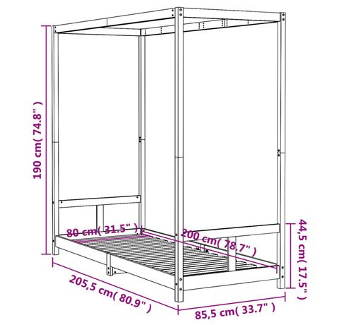 - Dimensiuni totale: 205,5 x 85,5 x 190 cm (L x l x î)