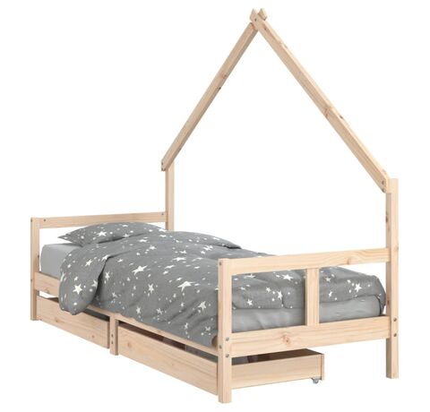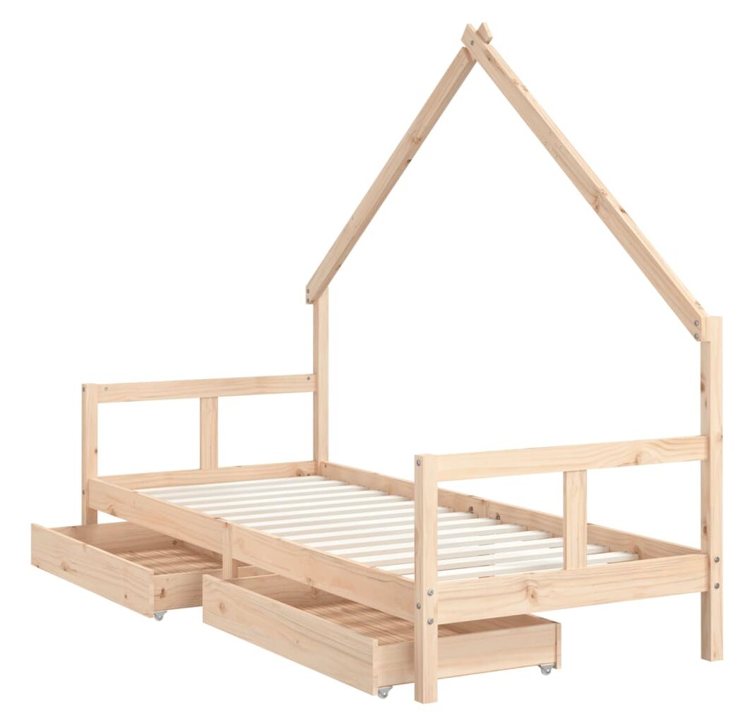 Cadru pat copii cu sertare, 80x200 cm, lemn masiv de pin