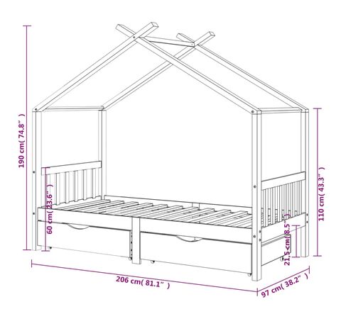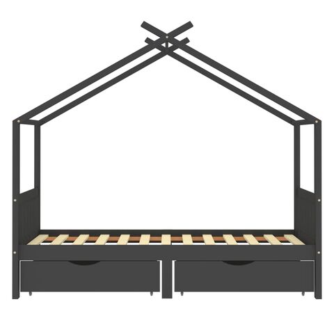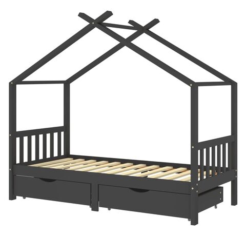 Acest cadru de pat pentru copii, din lemn, cu sertare, este o completare practică și decorativă în orice dormitor.