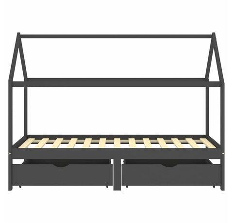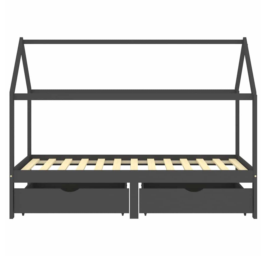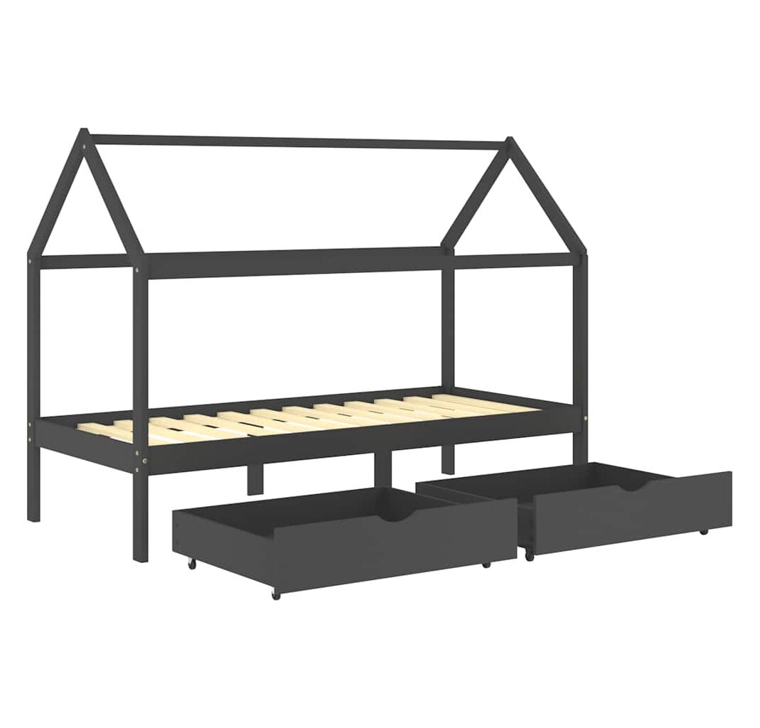Acest cadru de pat pentru copii, din lemn, cu sertare, este o completare practică și decorativă în orice dormitor.