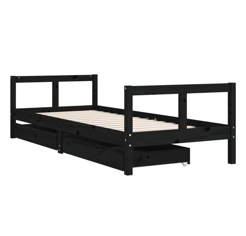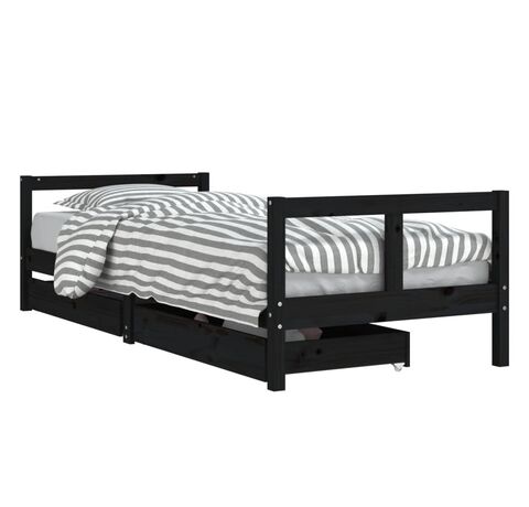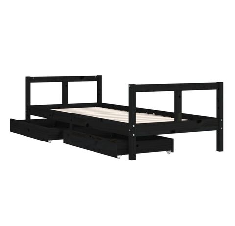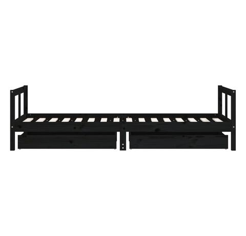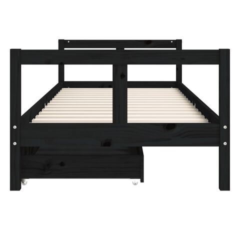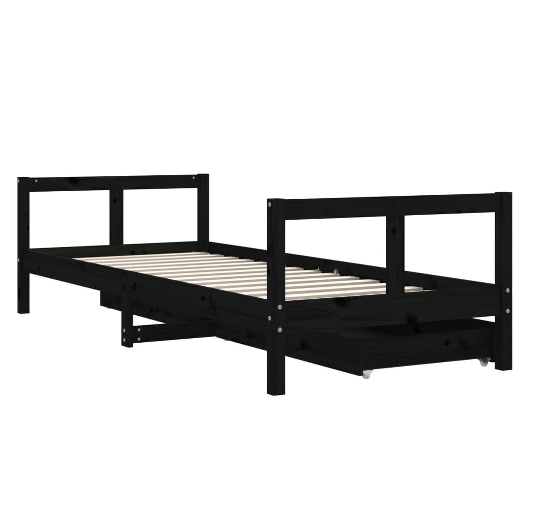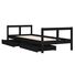 Cadru pat copii cu sertare, negru, 80x200 cm, lemn masiv de pin