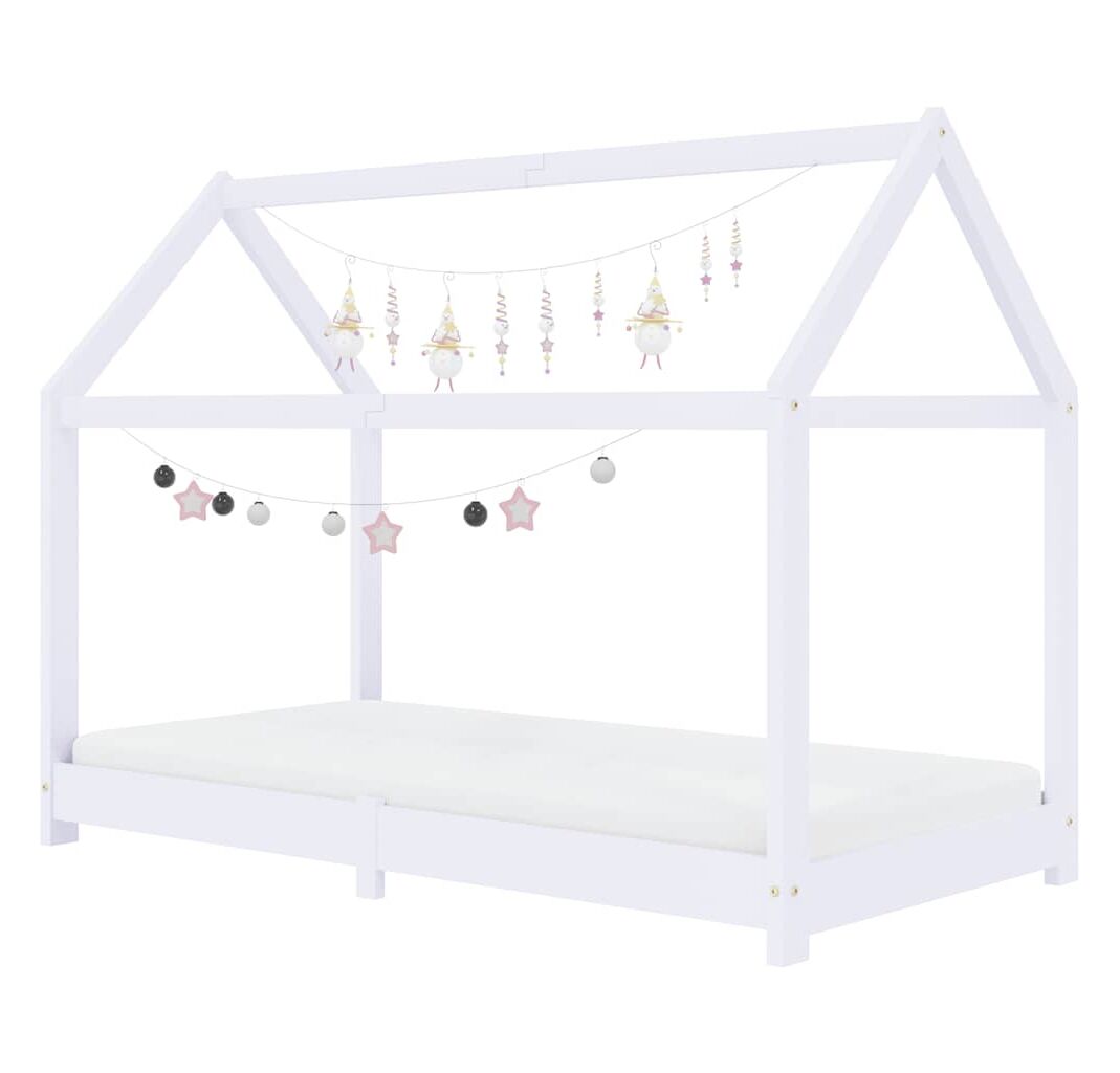 Cadru pat de copii, alb, 70 x 140 cm, lemn masiv de pin