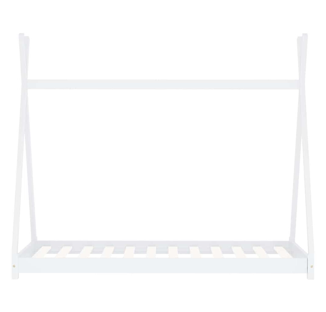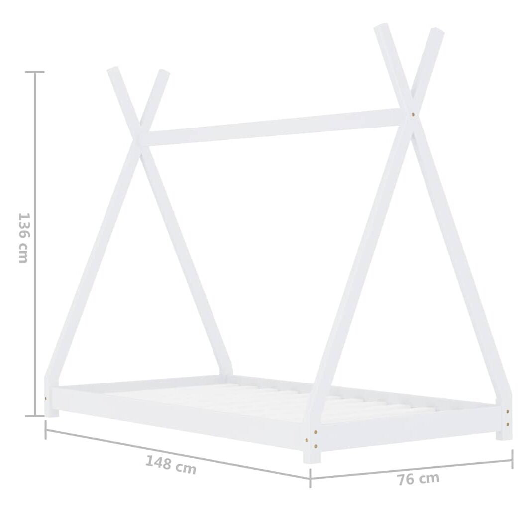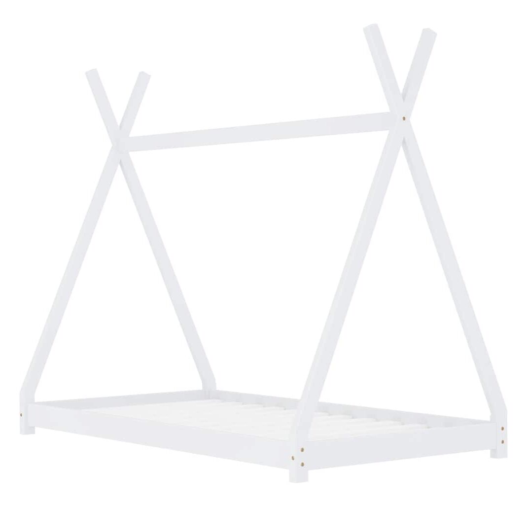 Patul dispune de un cadru transversal inedit, inspirat de corturile în stil Tipi, pe care puteți agăța perdele, ca să creați puțină intimitate pentru copilul dvs. Poate fi utilizat și ca loc de lectură sau căsuță de joacă pentru copil. Fabricat din lemn masiv de pin, acest cadru de pat este extrem de robust și durabil. Șipcile rezistente oferă suportul necesar și sunt extrem de confortabile. Acest cadru de pat este potrivit pentru o saltea de 70 x 140 cm.