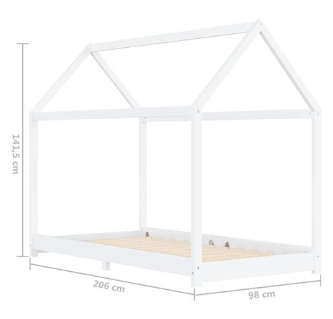 Cadru pat de copii, alb, 90 x 200 cm, lemn masiv de pin