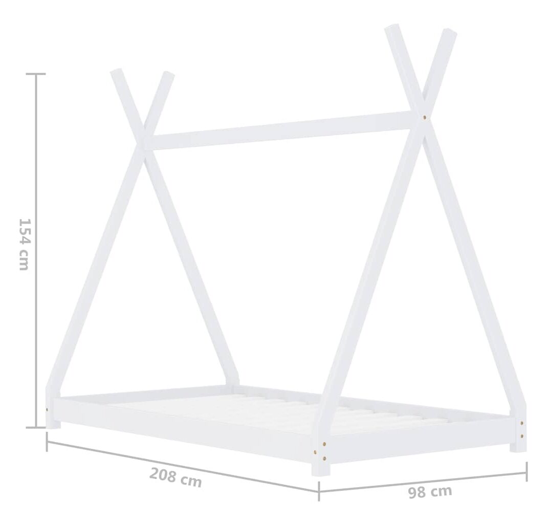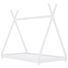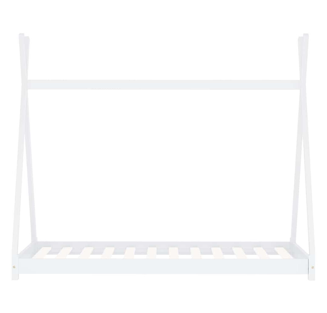 Patul dispune de un cadru transversal inedit, inspirat de corturile în stil tipi, pe care puteți agăța perdele, ca să creați puțină intimitate pentru copilul dvs. Poate fi utilizat și ca loc de lectură sau căsuță de joacă pentru copii. Fabricat din lemn masiv de pin, acest cadru de pat este extrem de robust și durabil. Șipcile rezistente oferă suportul necesar și sunt extrem de confortabile. Acest cadru de pat este potrivit pentru o saltea de 90 x 200 cm.