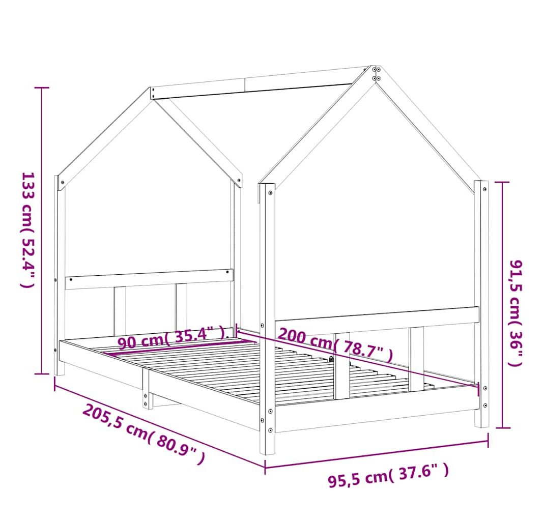 Cadru pat pentru copii, 90x200 cm, lemn masiv de pin
