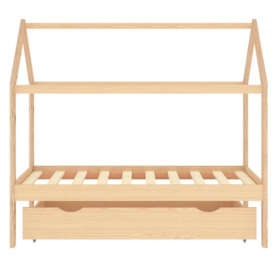 Cadru pat pentru copii, cu un sertar, 80x160 cm, lemn masiv pin