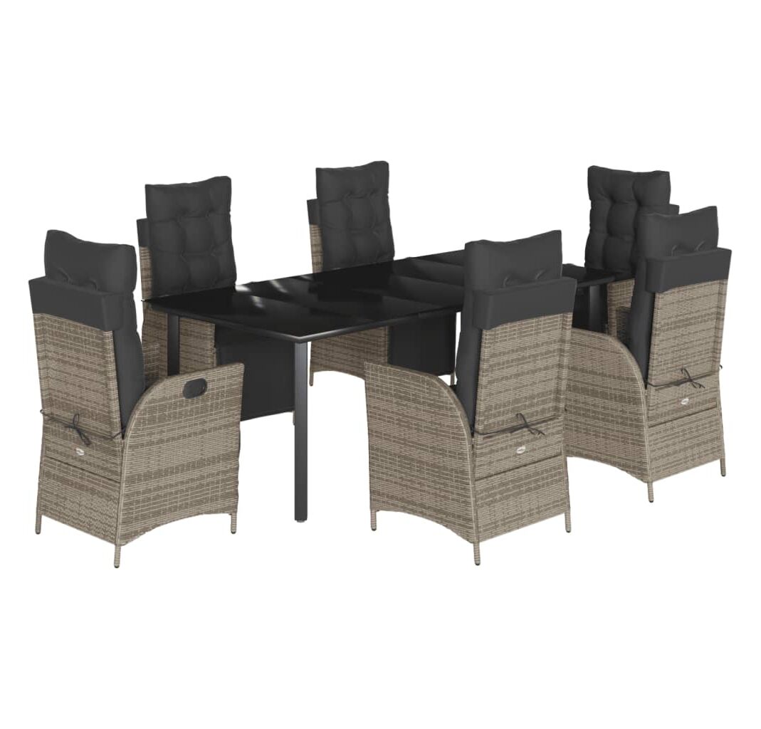 Set mobilier de grădină cu perne, 7 piese, gri, poliratan