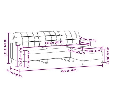 - Dimensiuni totale: 226 x 77 x 80 cm (l x ad. x î)
