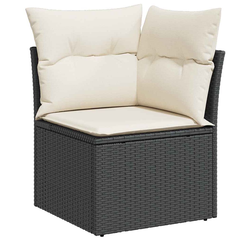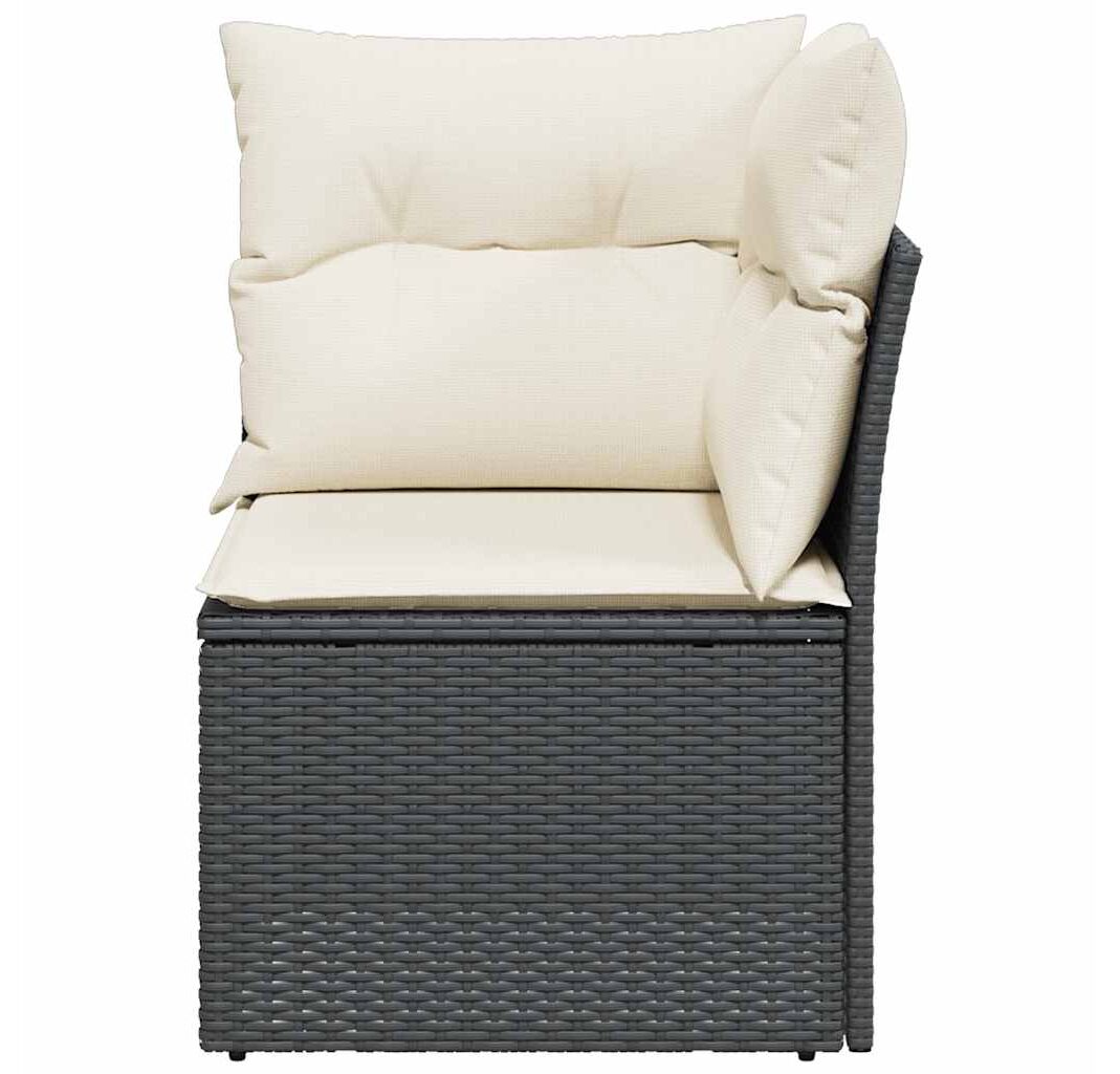 Cantitatea minima pentru "Canapea de colț cu pernă de grădină, negru, poliratan" este 1.