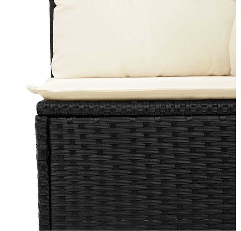Canapea de colț cu pernă de grădină, negru, poliratan