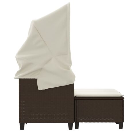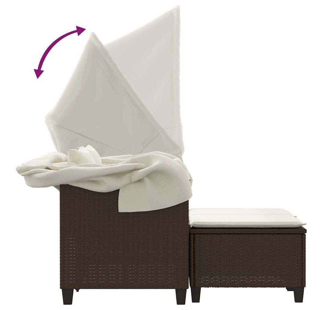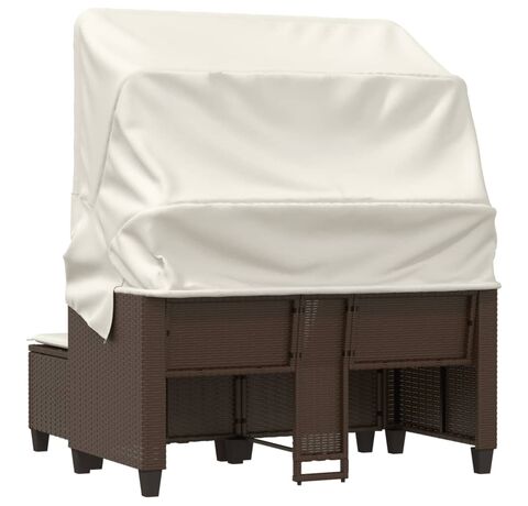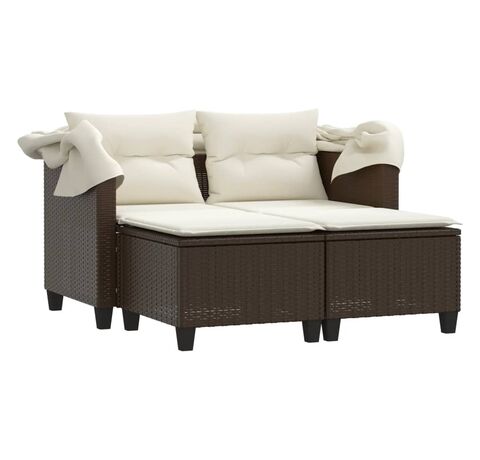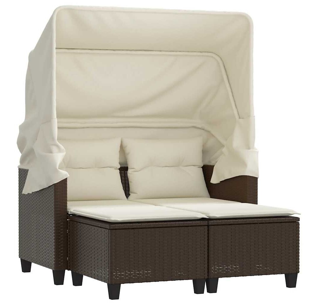Canapea grădină 2 locuri baldachin și taburete, maro, poliratan