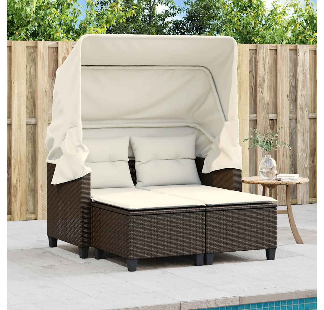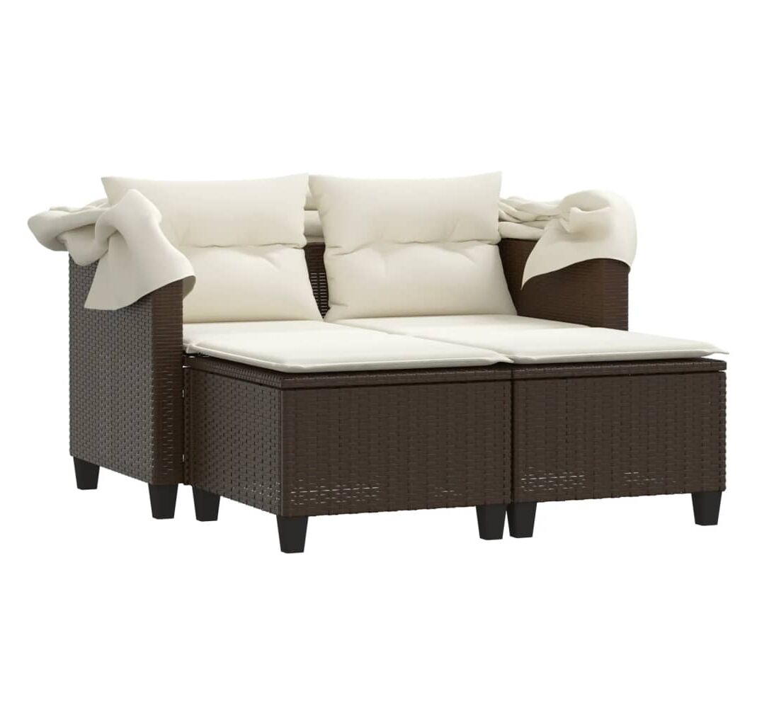 Cantitatea minima pentru "Canapea grădină 2 locuri baldachin și taburete, maro, poliratan" este 1.