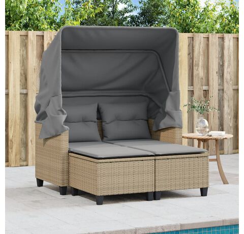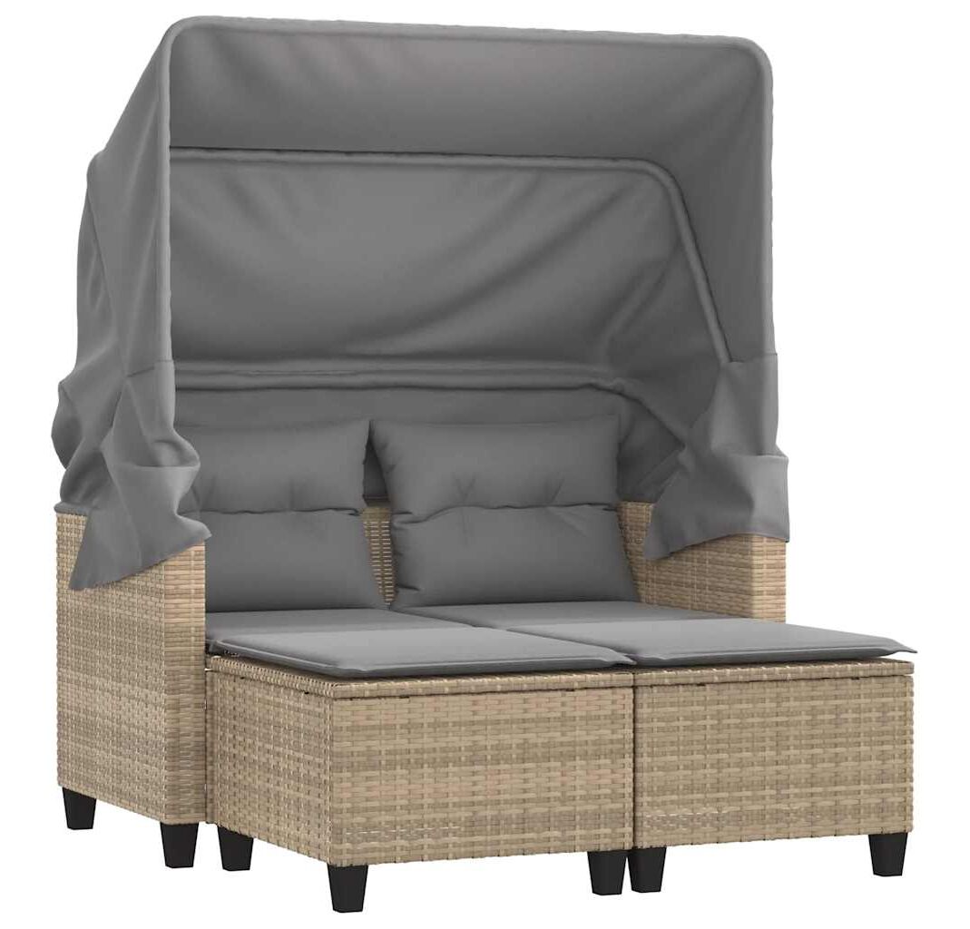 Canapea de grădină cu baldachin și scaune, bej, poliratan