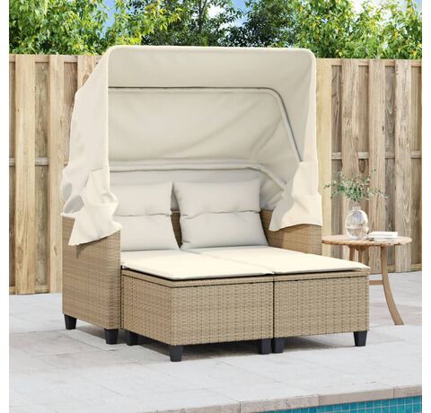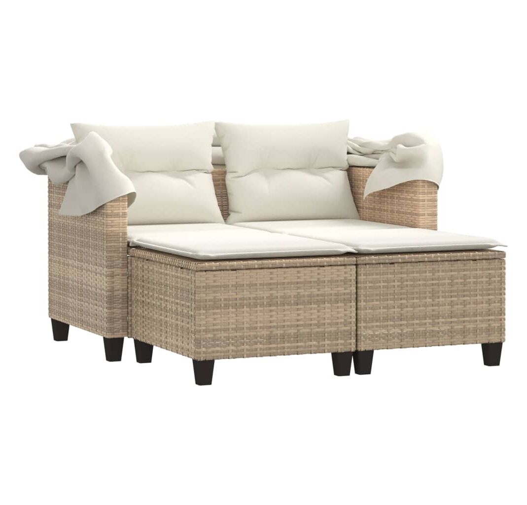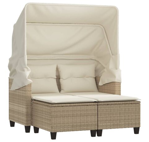 Canapea de grădină cu baldachin și scaune, bej, poliratan