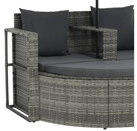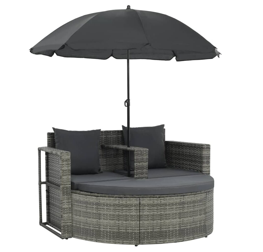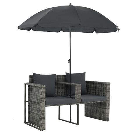 Acest set de canapea de exterior, cu o canapea cu 2 locuri, un taburet și o umbrelă de soare, combină stilul și funcționalitatea și va deveni punctul central din grădina sau curtea dvs.