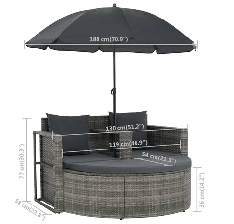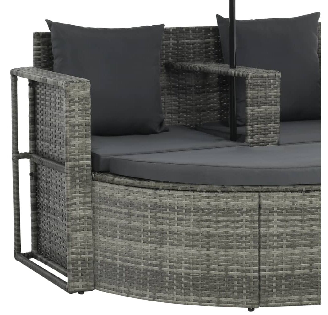 Datorită ratanului PE rezistent la apă, setul de mobilier de exterior este ușor de curățat, rezistent la uzură și potrivit pentru utilizarea zilnică. Setul dispune de un cadru robust din oțel, extrem de durabil și stabil. Umbrela rezistentă la razele UV este proiectată pentru a bloca razele UV dăunătoare. Suportul de picioare poate fi detașat, după cum doriți. Pernele groase, detașabile, cu umplutură din spumă, vor oferi un loc perfect confortabil în orice poziție v-ați alege. Husele pernei pot fi îndepărtate și spălate cu ușurință.