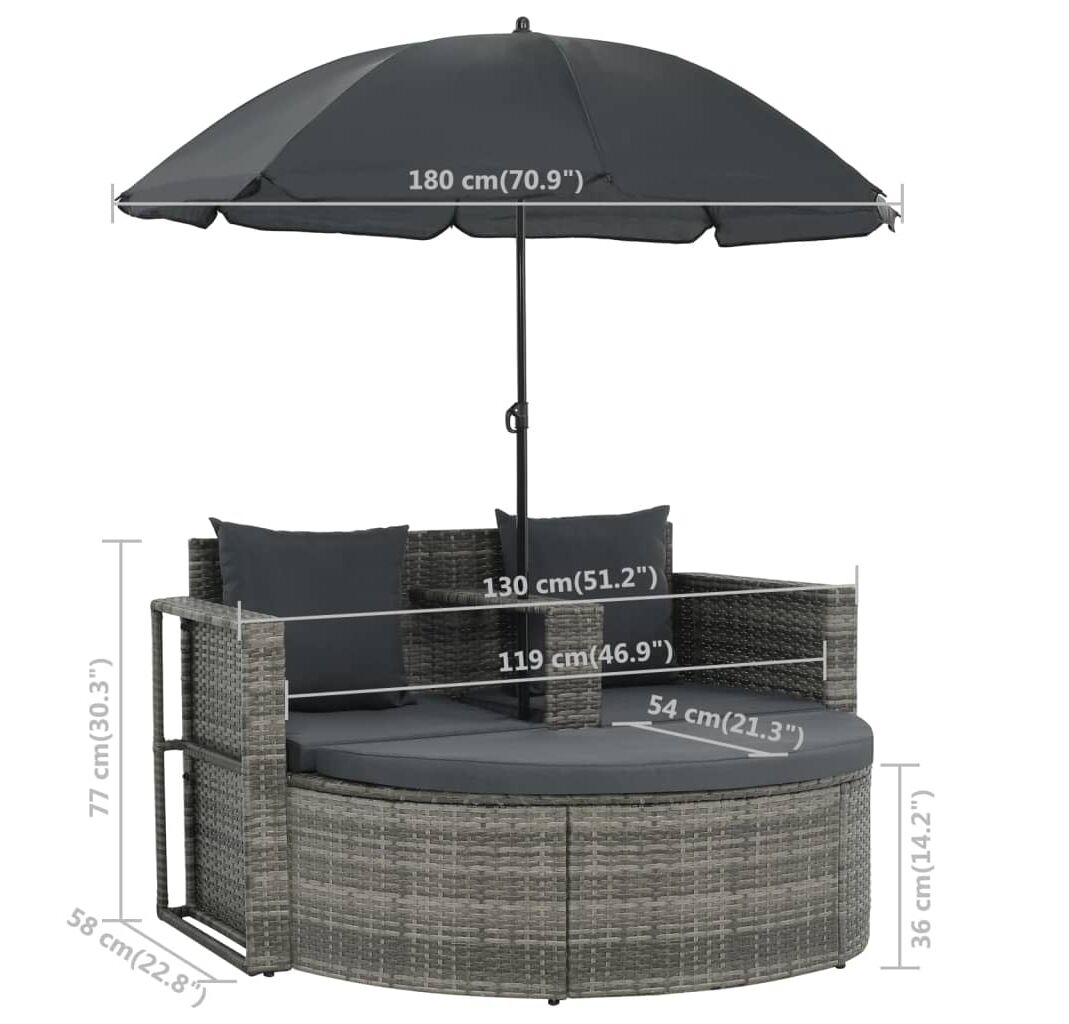 - Culoare pernă și umbrelă: Gri închis