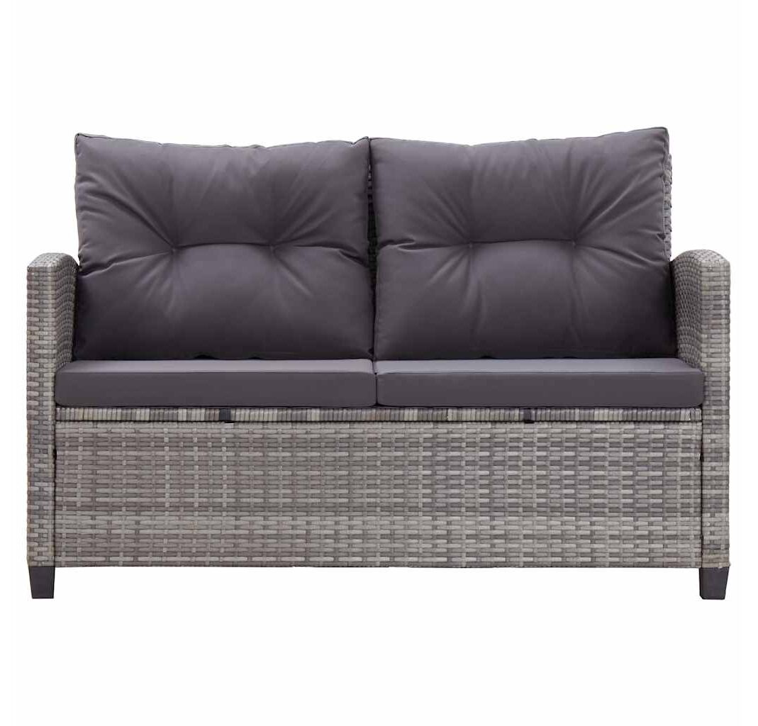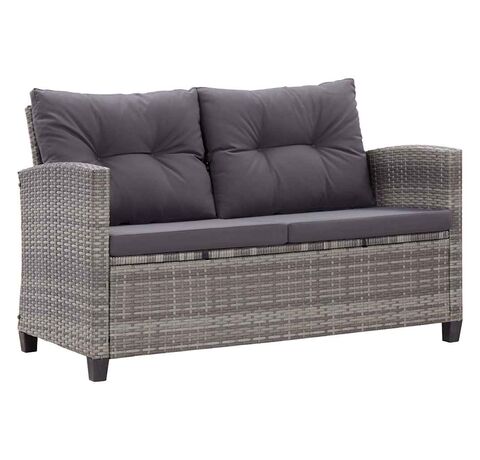 Canapea de grădină cu 2 locuri cu perne, gri, 124 cm, poliratan