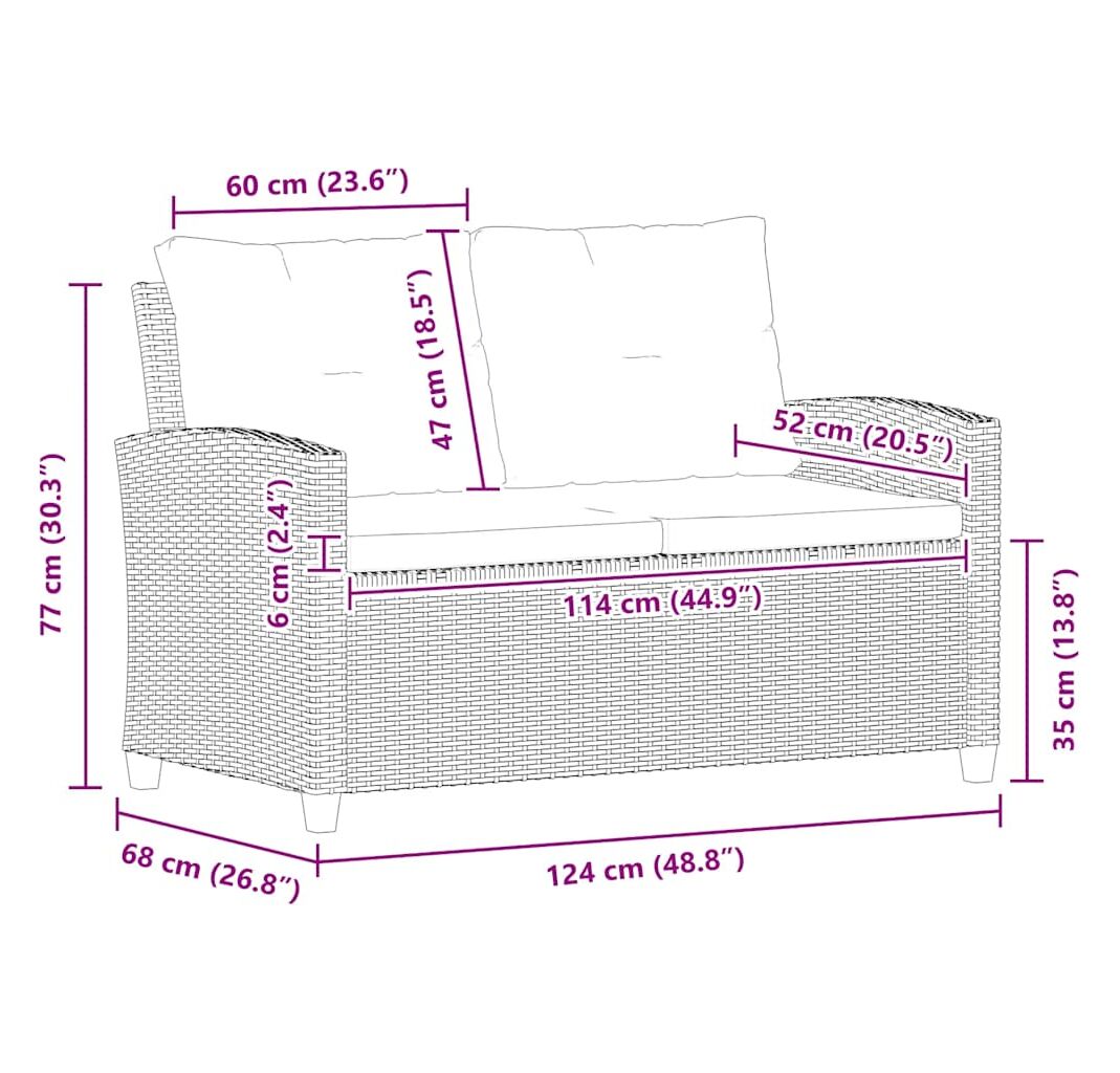 Această canapea de grădină cu 2 locuri, cu designul său elegant și practic, va fi locul perfect pentru relaxare în grădină, pe balcon sau în curtea dvs.