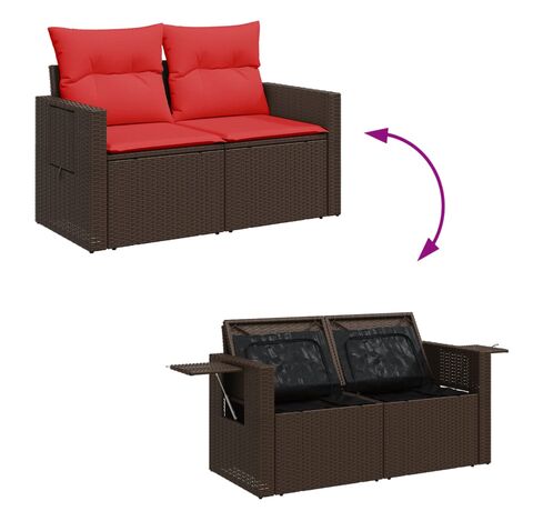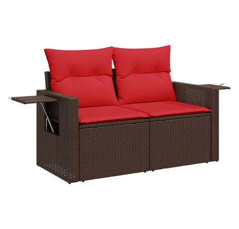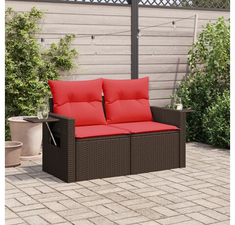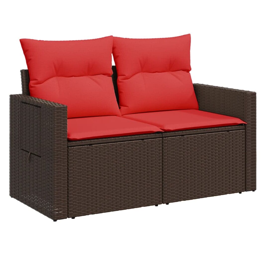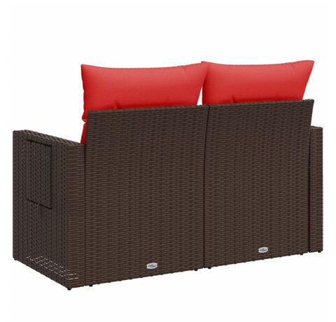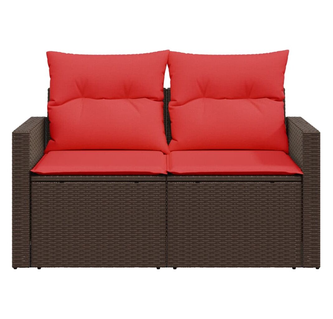 Canapea de grădină cu 2 locuri, maro, din poliratan, cu perne