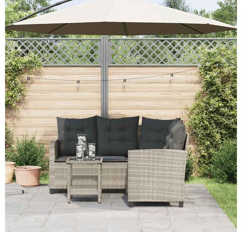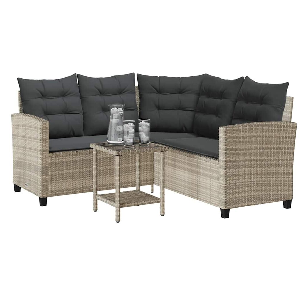 Canapea de grădină cu masă și perne în formă de L gri deschis