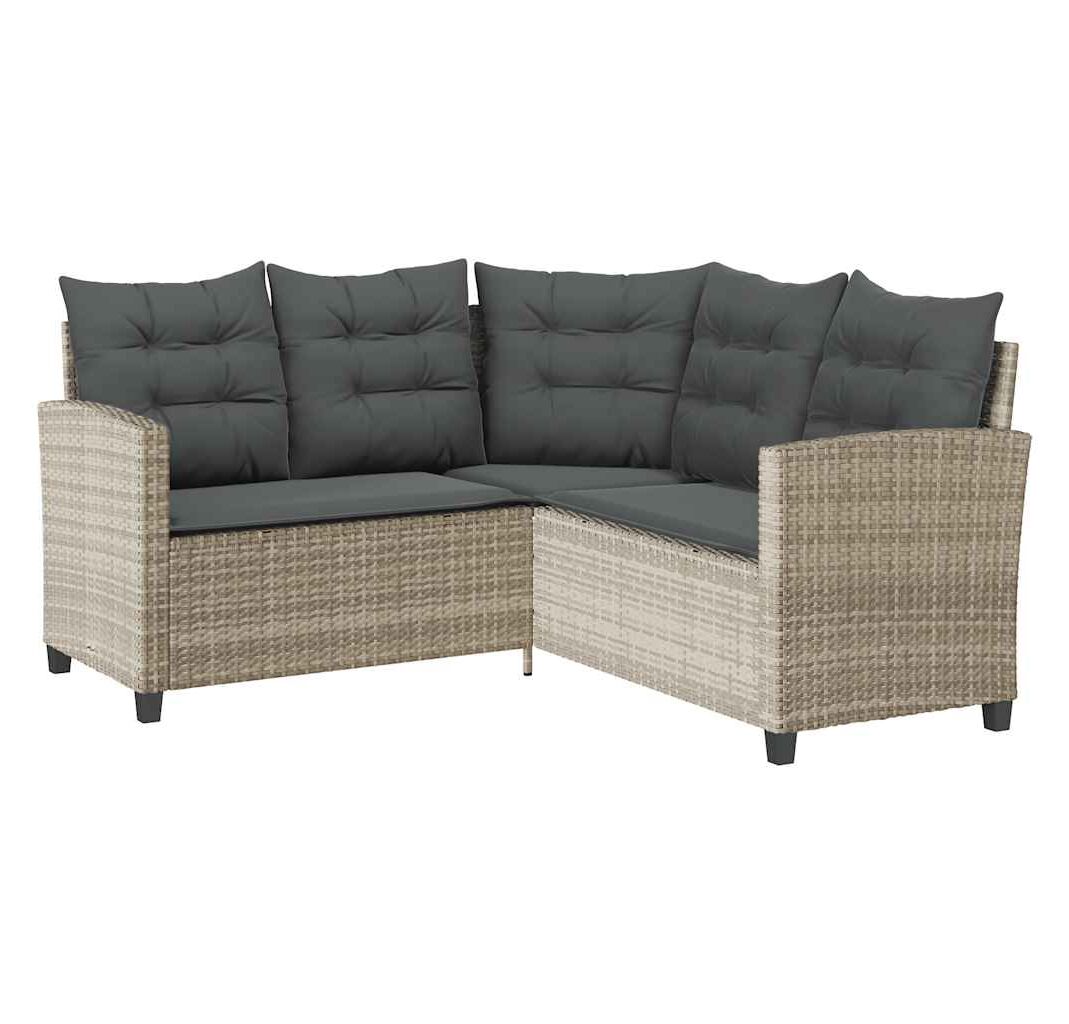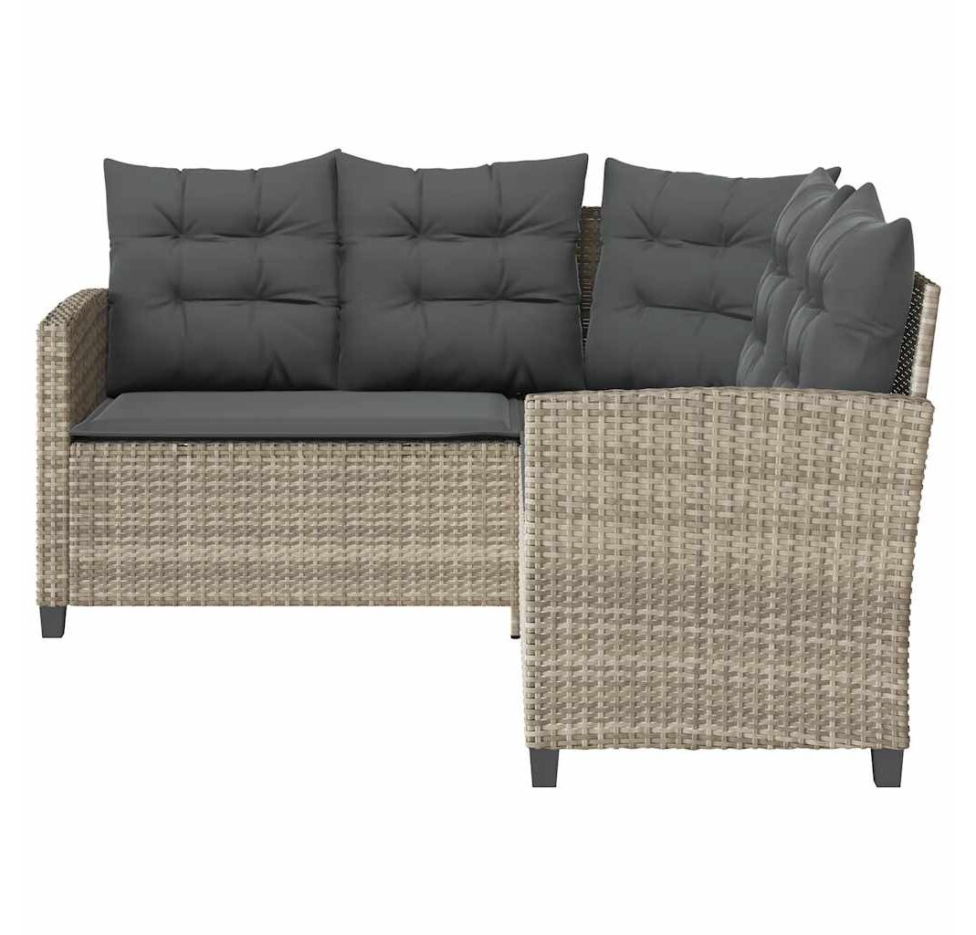 Această canapea de grădină în formă de L este completarea perfectă pentru grădina, terasa sau curtea dvs., oferind un spațiu confortabil și primitor pentru a discuta cu familia și prietenii sau pur și simplu pentru a vă relaxa și a vă bucura de aer liber.