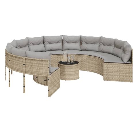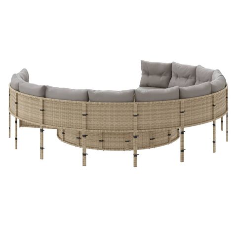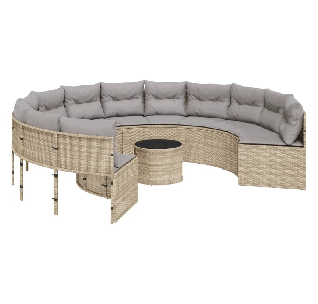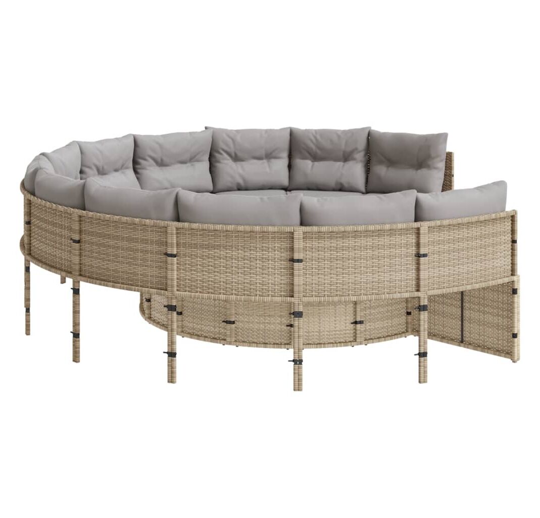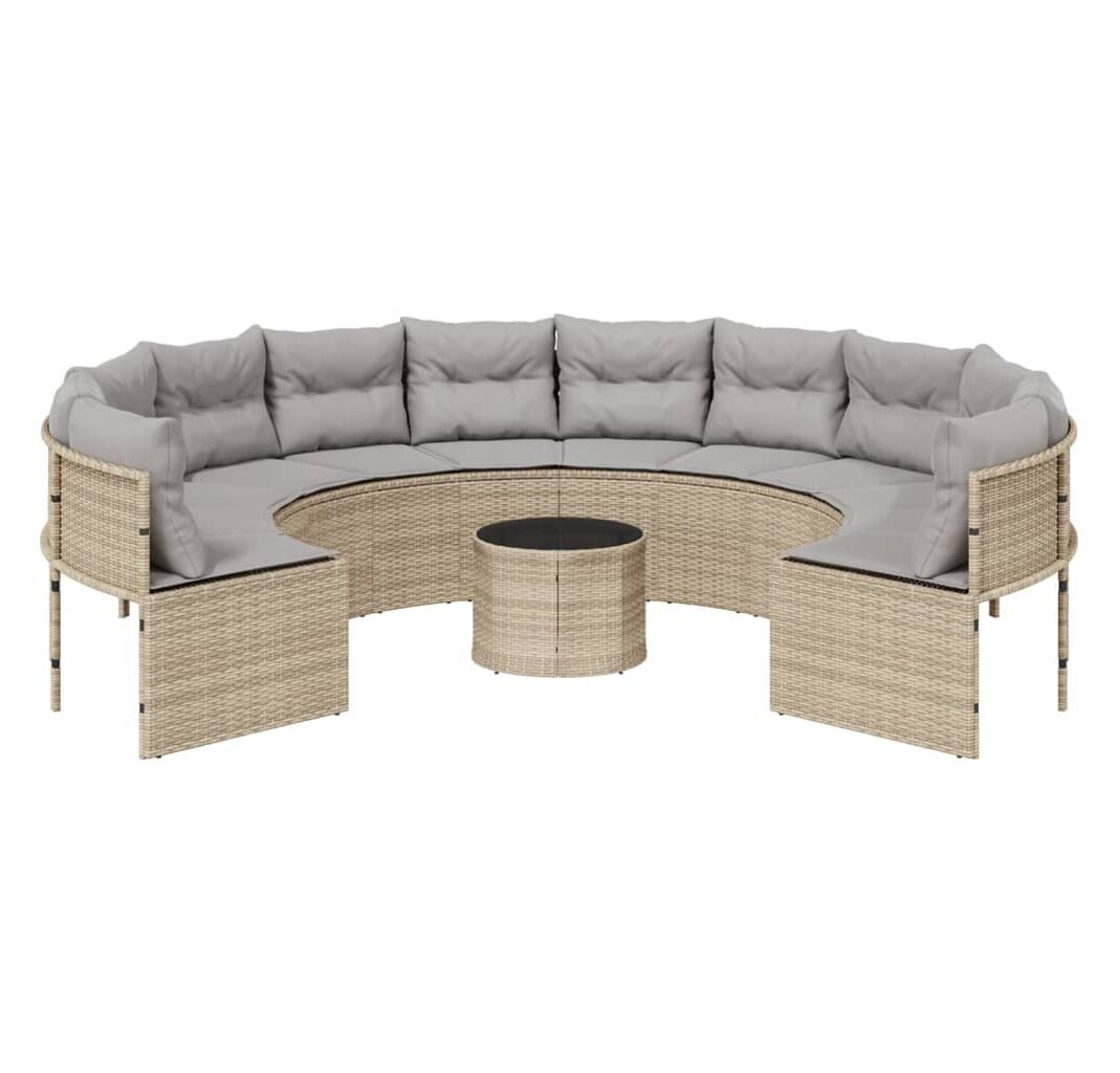 Această canapea de grădină, în formă rotundă, este completarea perfectă pentru grădina, terasa sau curtea dvs., oferind un spațiu confortabil și primitor pentru a discuta cu familia și prietenii sau pur și simplu pentru a vă relaxa și a vă bucura de aer liber.