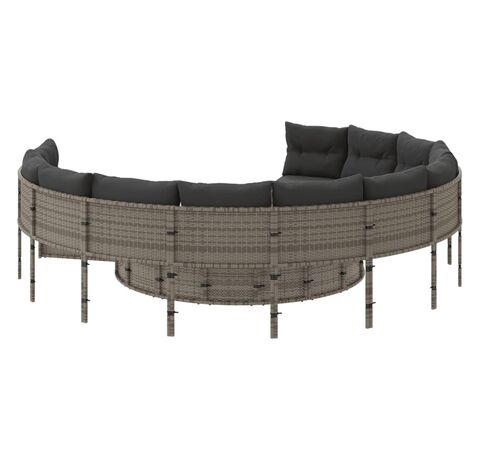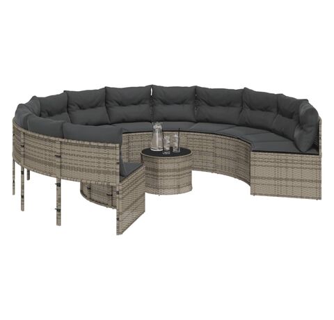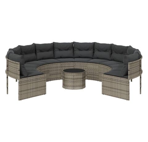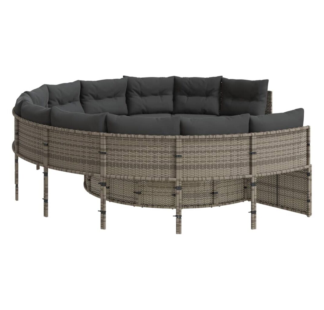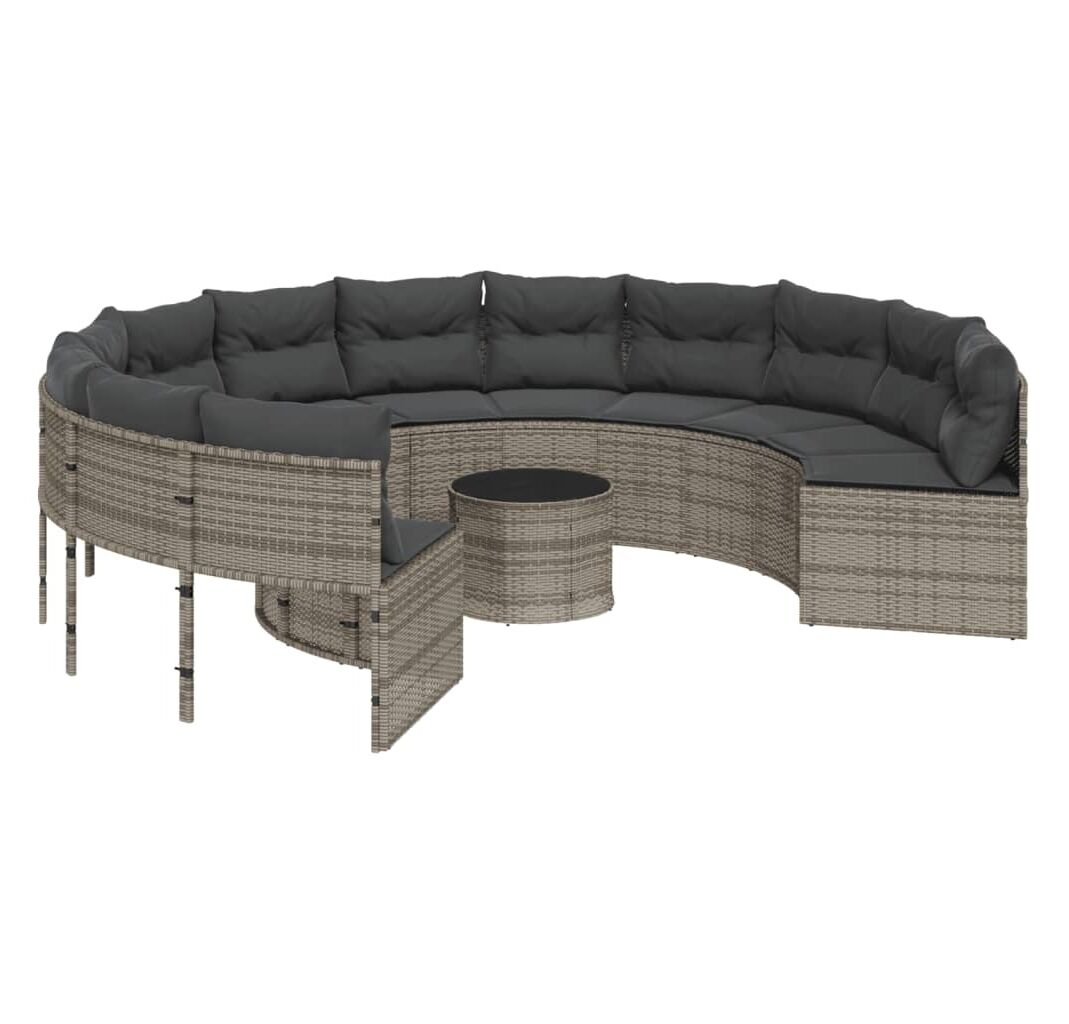 Această canapea de grădină, în formă rotundă, este completarea perfectă pentru grădina, terasa sau curtea dvs., oferind un spațiu confortabil și primitor pentru a discuta cu familia și prietenii sau pur și simplu pentru a vă relaxa și a vă bucura de aer liber.