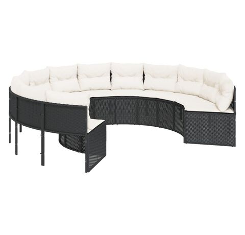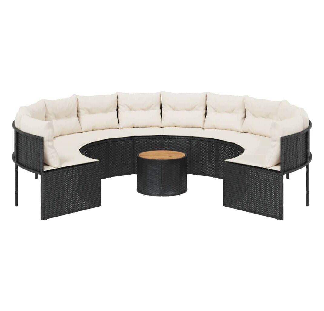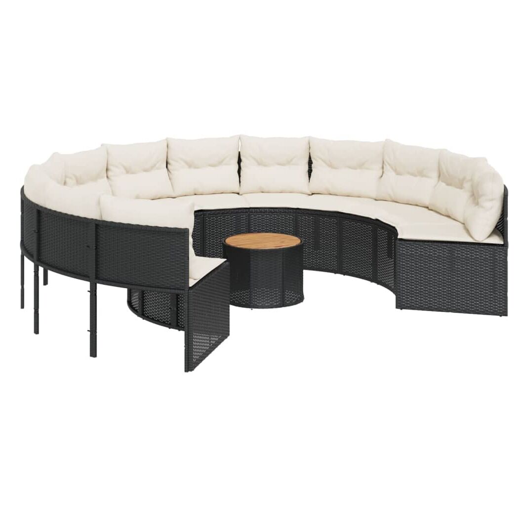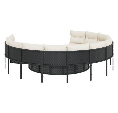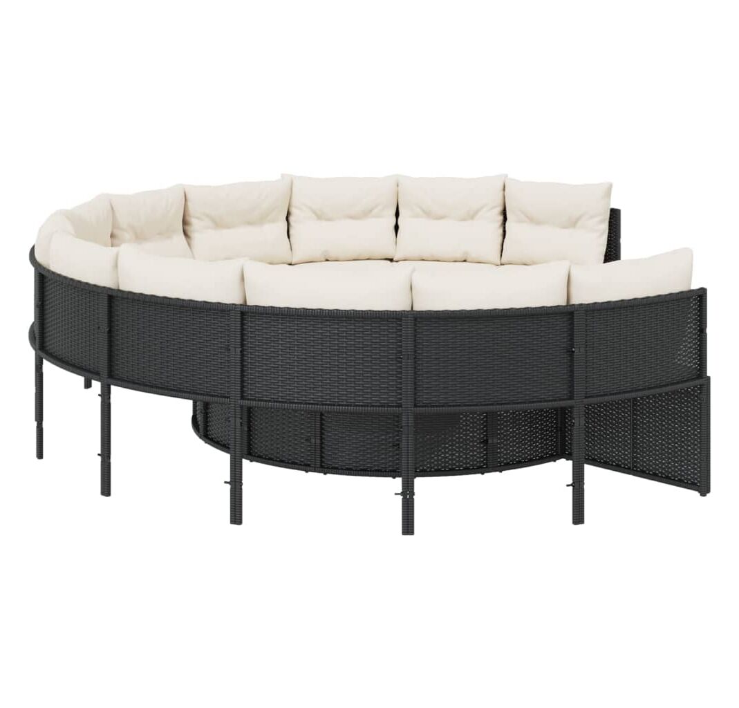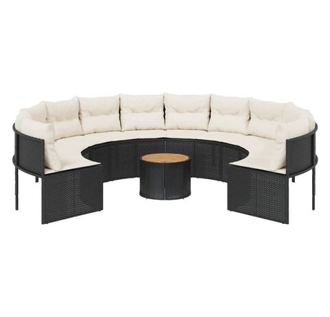 Această canapea de grădină, în formă rotundă, este completarea perfectă pentru grădina, terasa sau curtea dvs., oferind un spațiu confortabil și primitor pentru a discuta cu familia și prietenii sau pur și simplu pentru a vă relaxa și a vă bucura de aer liber.