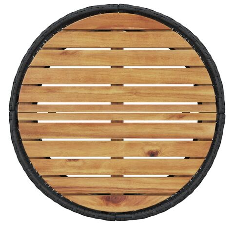 - Material: Ratan PE, oțel vopsit electrostatic, lemn masiv de acacia cu finisaj natural de ulei