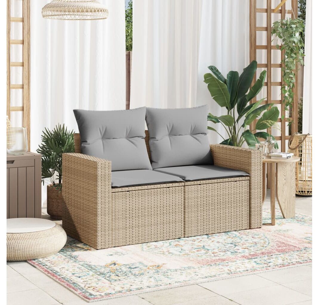 Canapea de grădină cu perne, 2 locuri, bej, poliratan