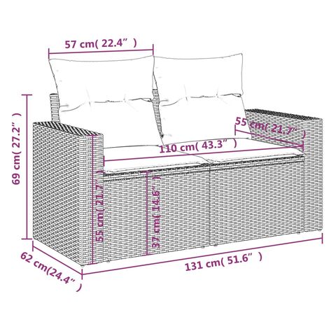Cantitatea minima pentru "Canapea de grădină cu perne, 2 locuri, bej, poliratan" este 1.