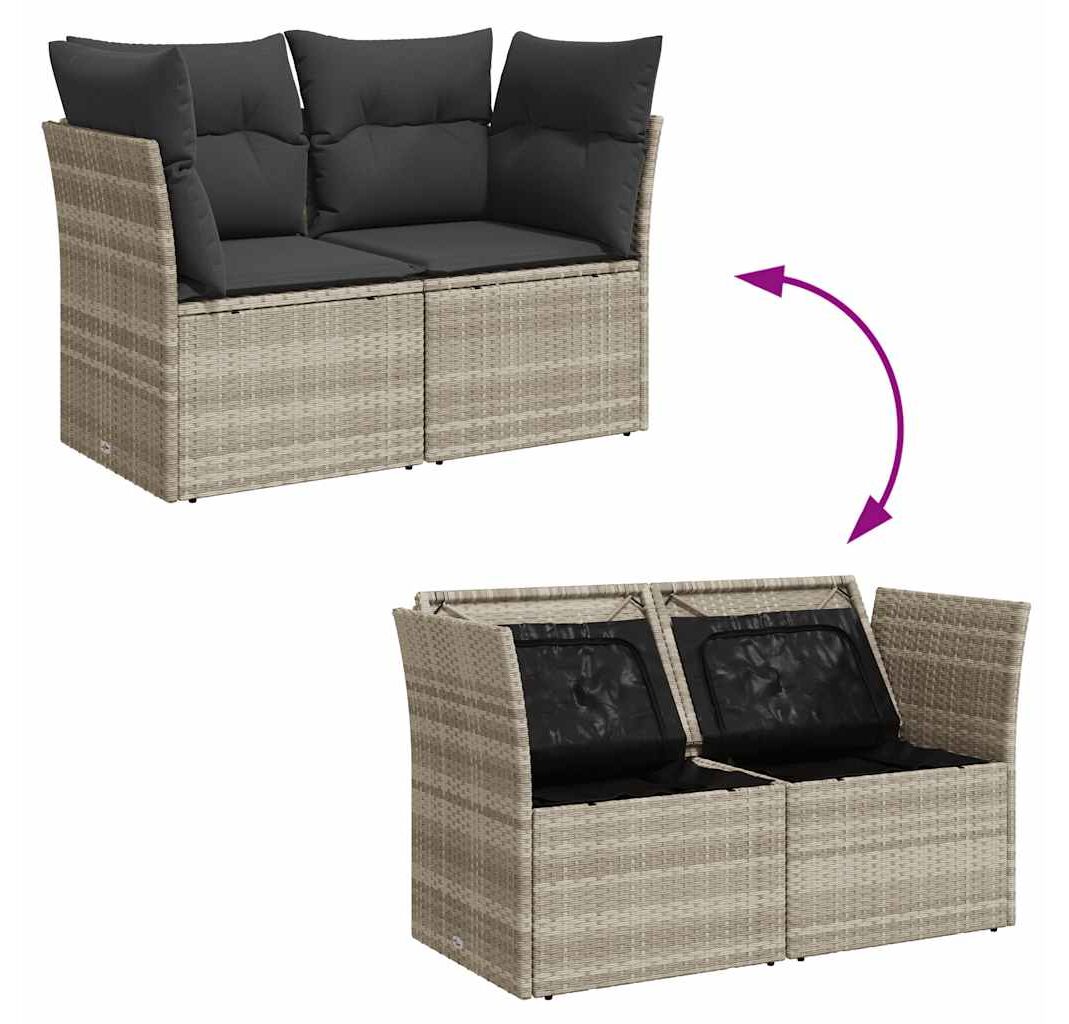 - Funcție de depozitare cu sac rezistent la apă: Fiecare scaun de grădină are spațiu de depozitare sub șezut, fiind complet datorită unui sac rezistent la apă pentru depozitarea pernelor, jucăriilor și a altor articole. Sacii interiori au o husă superioară și pot fi prinși în siguranță de scaune cu elemente de fixare cu bandă adezivă cu arici, pentru o stabilitate sporită.