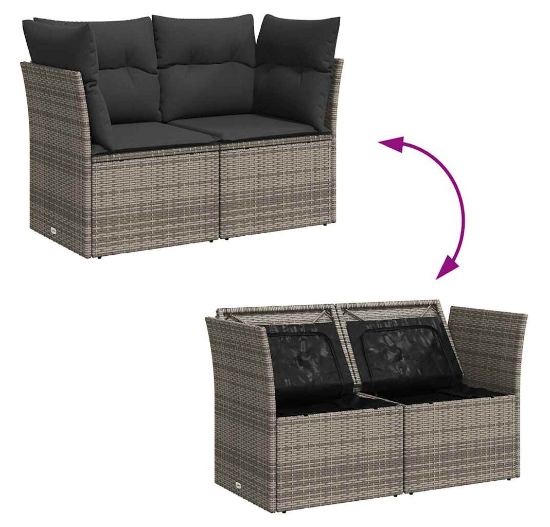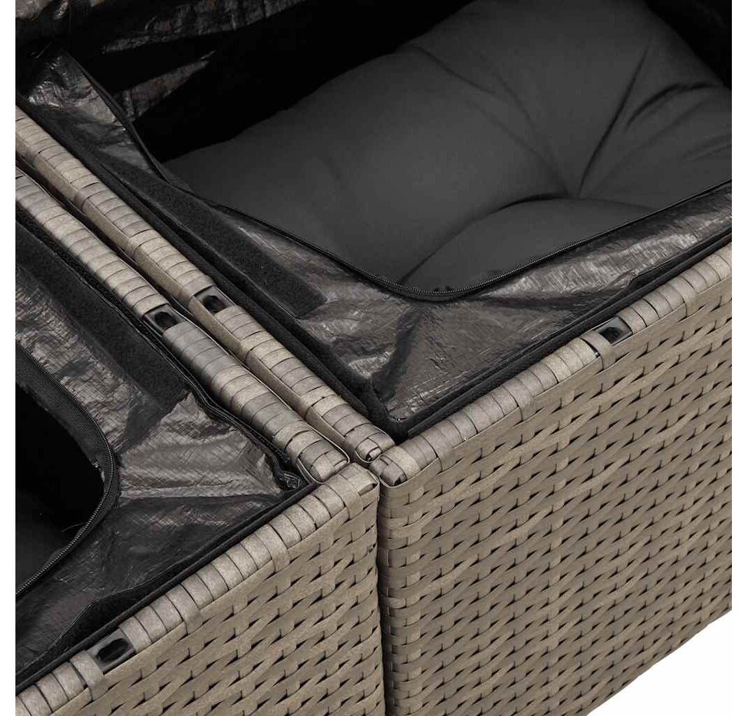 - Funcție de depozitare cu sac rezistent la apă: Fiecare scaun de grădină are spațiu de depozitare sub șezut, fiind complet datorită unui sac rezistent la apă pentru depozitarea pernelor, jucăriilor și a altor articole. Sacii interiori au o husă superioară și pot fi prinși în siguranță de scaune cu elemente de fixare cu bandă adezivă cu arici, pentru o stabilitate sporită.