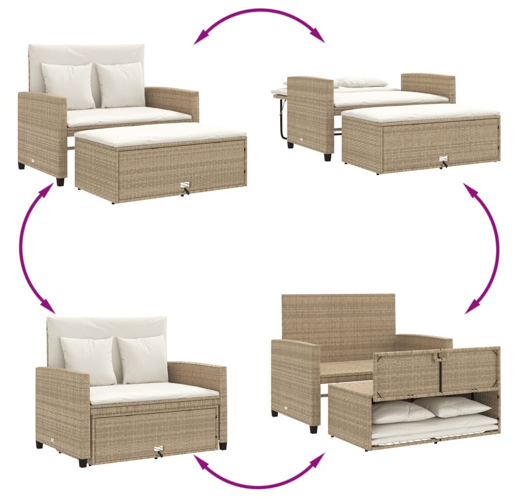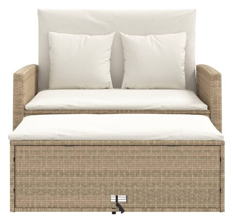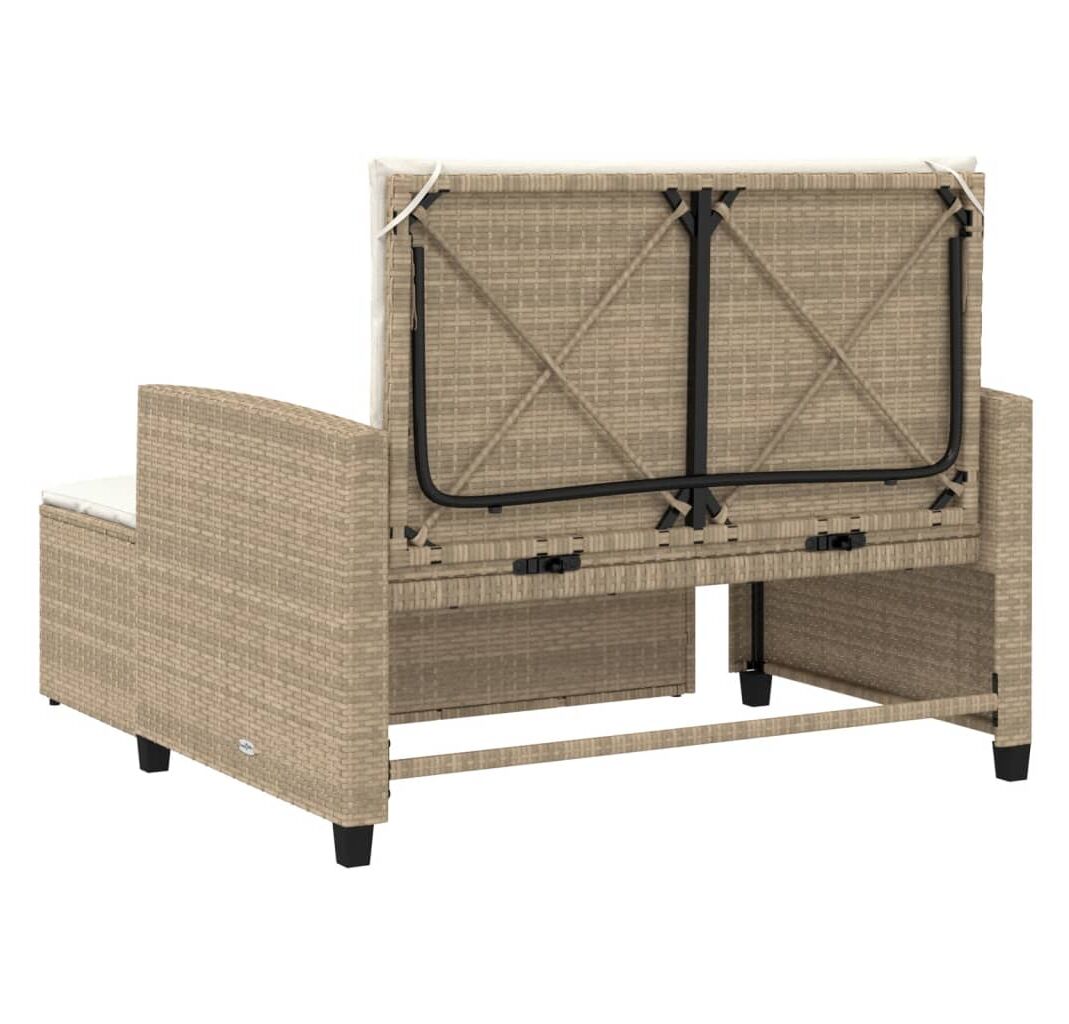 - Funcționalitate versatilă: Acest mobilier de exterior poate fi folosit ca o banchetă cu 2 locuri sau ca o canapea extensibilă. O poți schimba cu ușurință într-un pat, înclinând spătarul și trăgând taburetul de sub bancă. Panourile de sprijin din spatele spătarelor fac patul mai stabil.