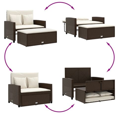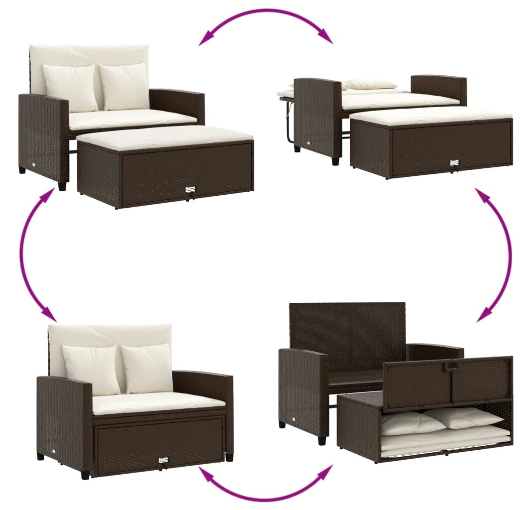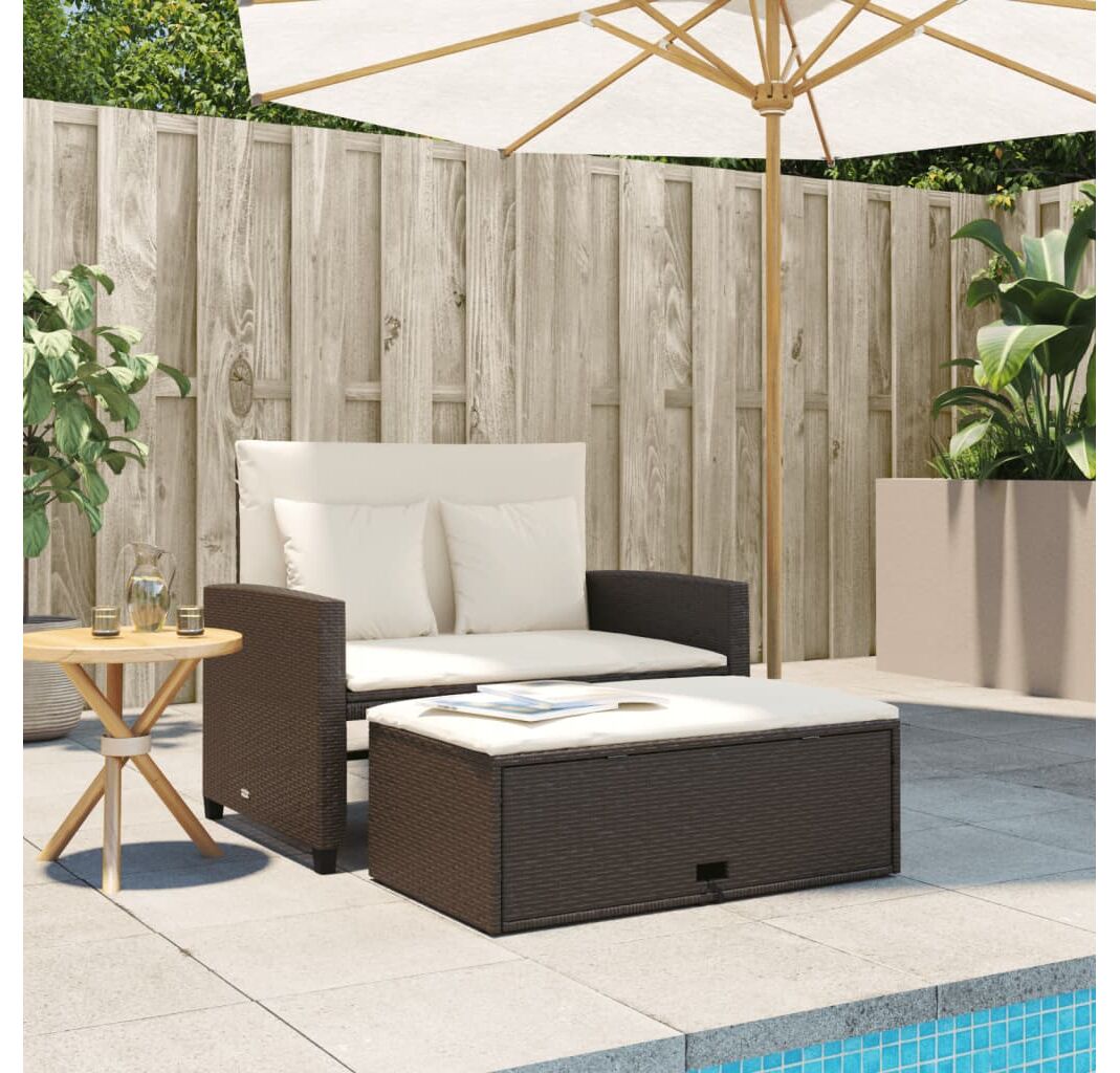 Canapea de grădină cu perne, 2 locuri, maro, poliratan