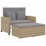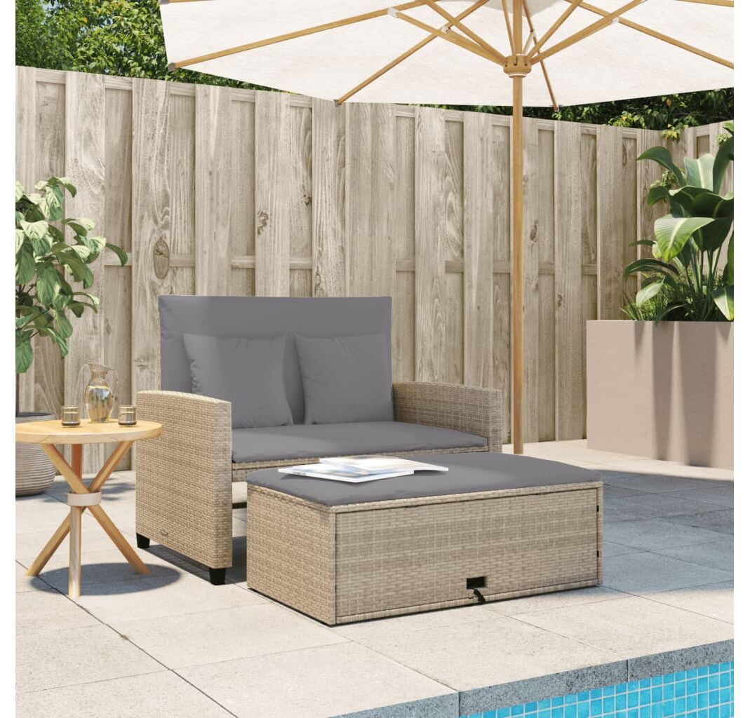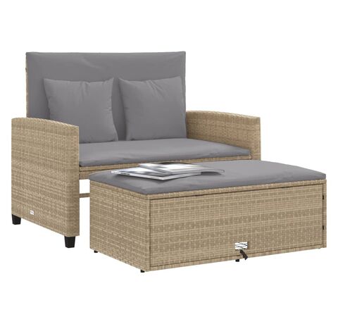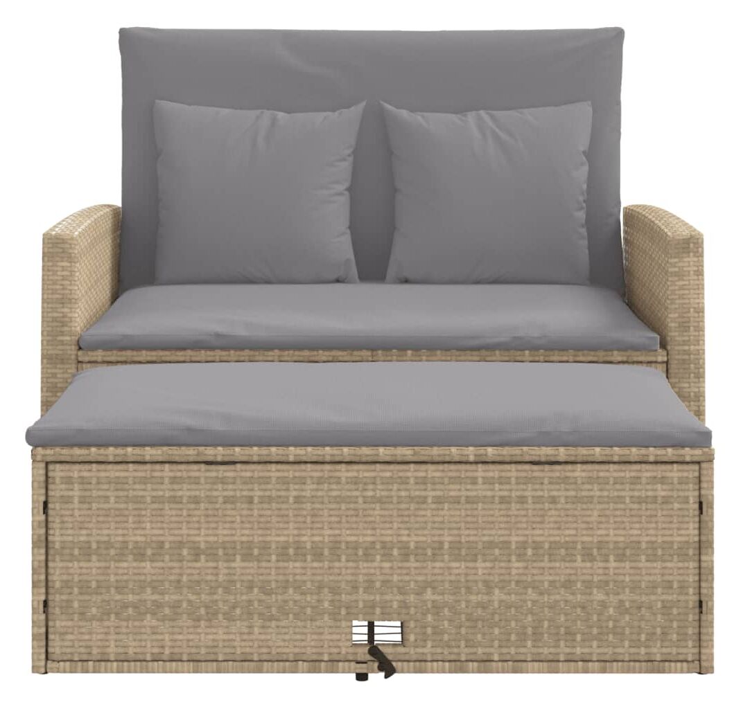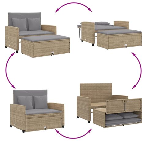 - Funcționalitate versatilă: Acest mobilier de exterior poate fi folosit ca o banchetă cu 2 locuri sau ca o canapea extensibilă. O poți schimba cu ușurință într-un pat, înclinând spătarul și trăgând taburetul de sub bancă. Panourile de sprijin din spatele spătarelor fac patul mai stabil.