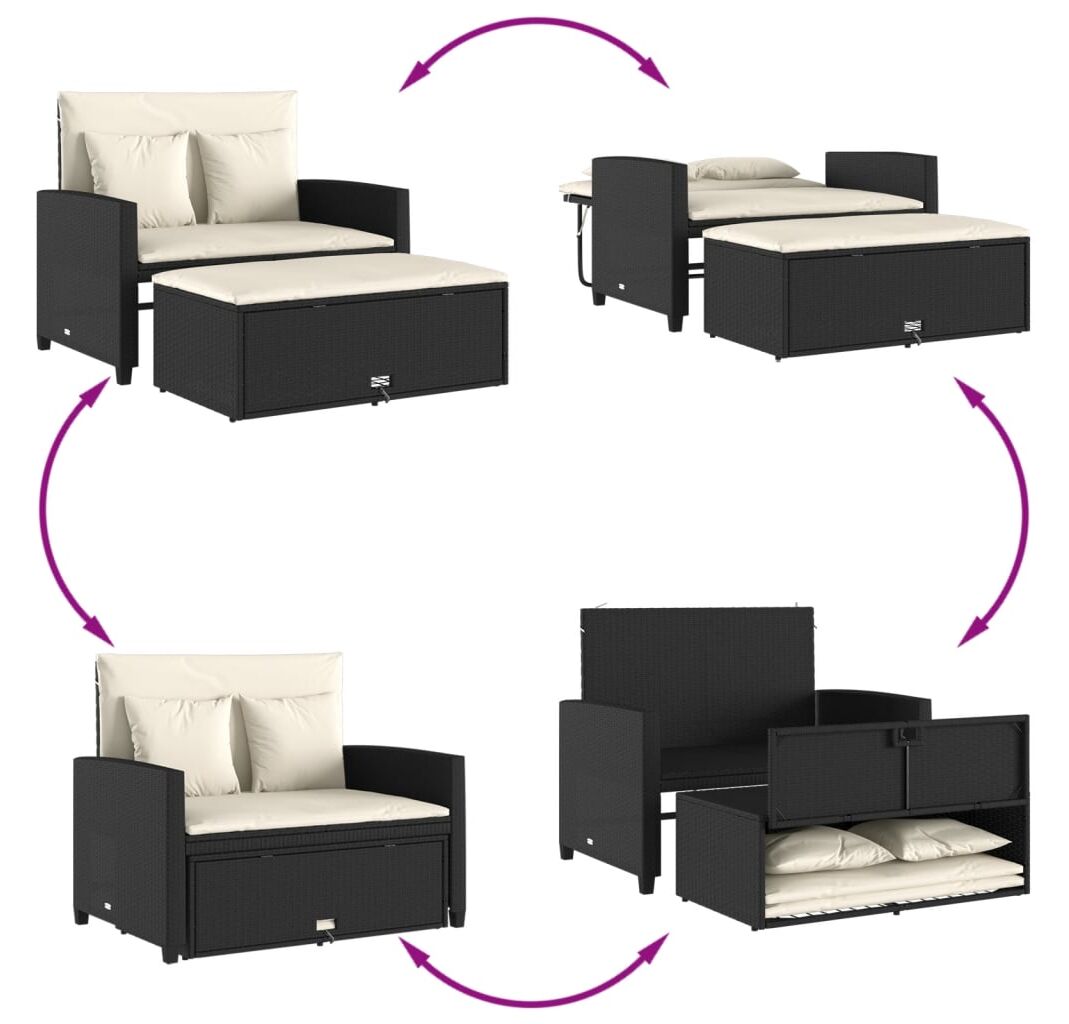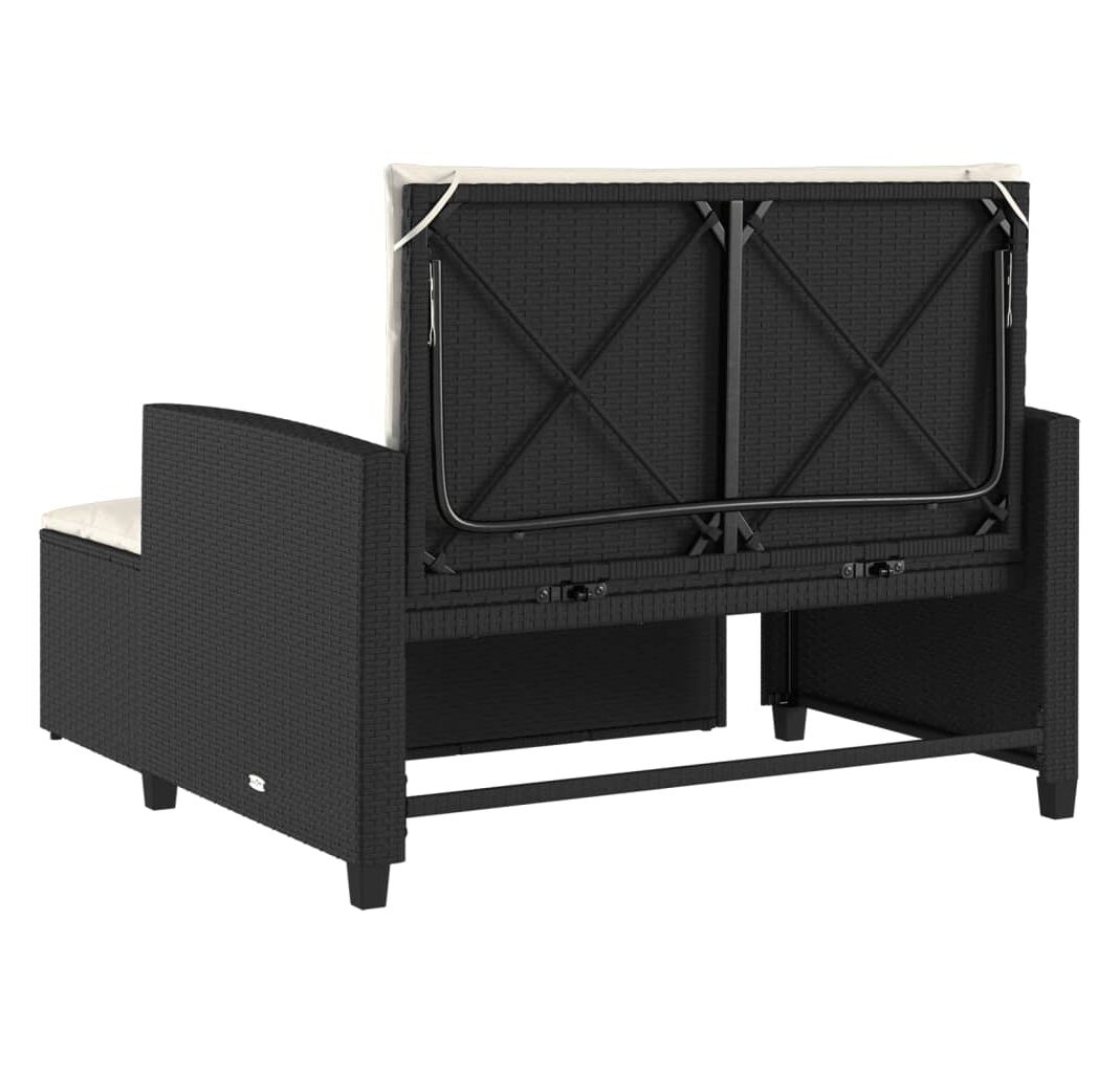 - Funcționalitate versatilă: Acest mobilier de exterior poate fi folosit ca o banchetă cu 2 locuri sau ca o canapea extensibilă. O poți schimba cu ușurință într-un pat, înclinând spătarul și trăgând taburetul de sub bancă. Panourile de sprijin din spatele spătarelor fac patul mai stabil.