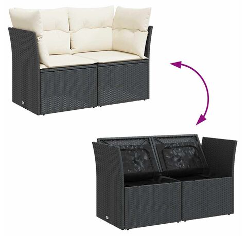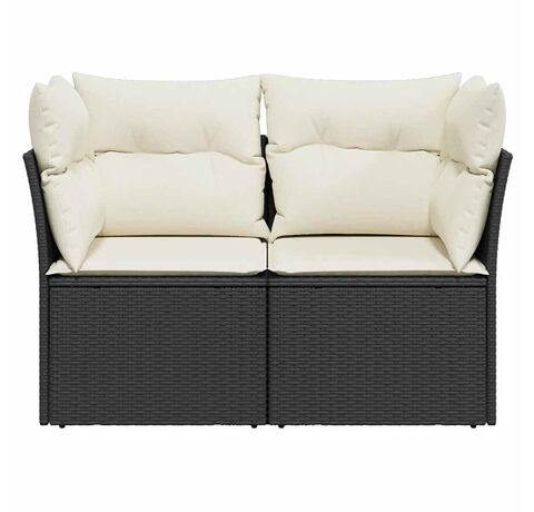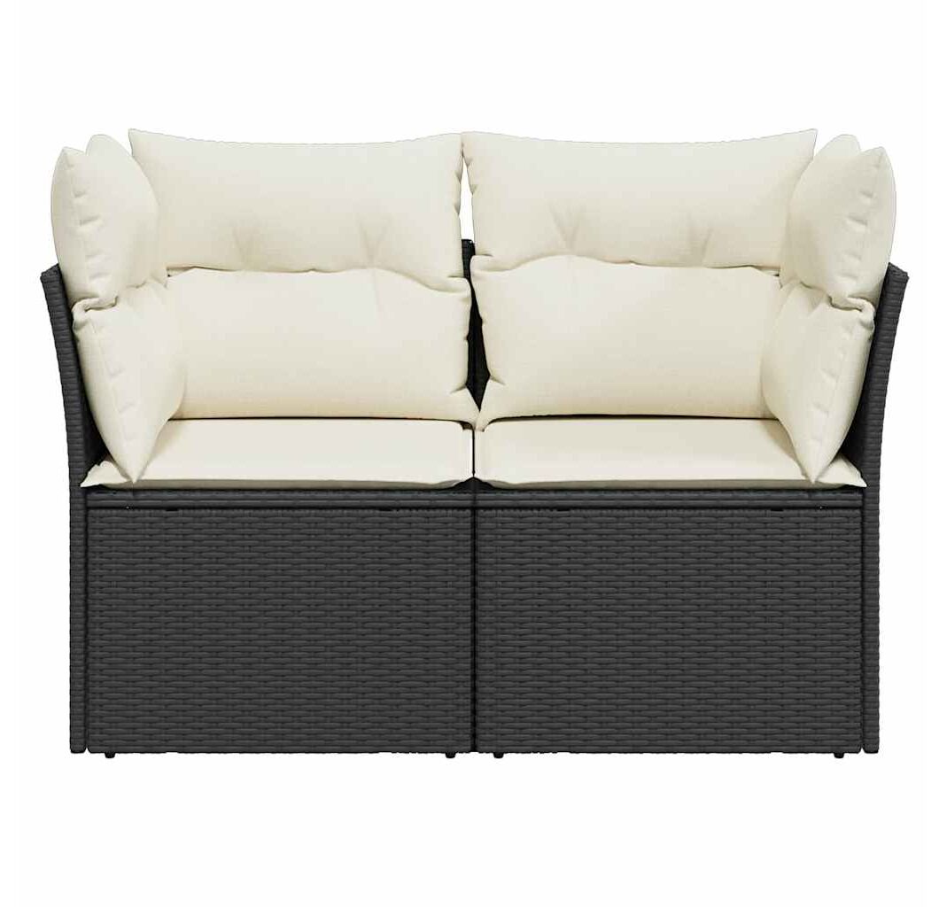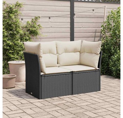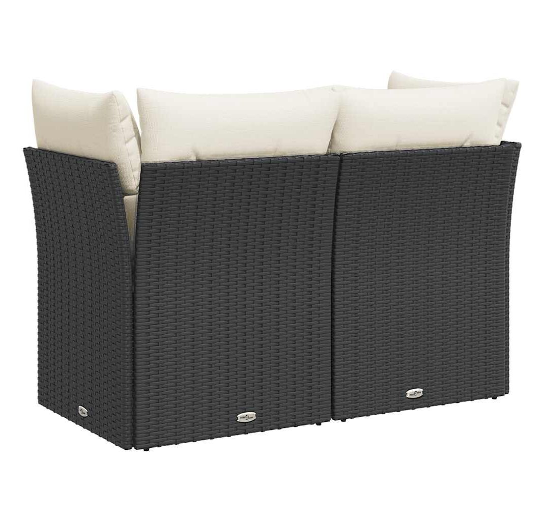 Canapea de grădină cu perne, 2 locuri, negru, poliratan