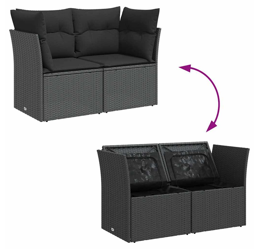 - Funcție de depozitare cu sac rezistent la apă: Fiecare scaun de grădină are spațiu de depozitare sub șezut, fiind complet datorită unui sac rezistent la apă pentru depozitarea pernelor, jucăriilor și a altor articole. Sacii interiori au o husă superioară și pot fi prinși în siguranță de scaune cu elemente de fixare cu bandă adezivă cu arici, pentru o stabilitate sporită.